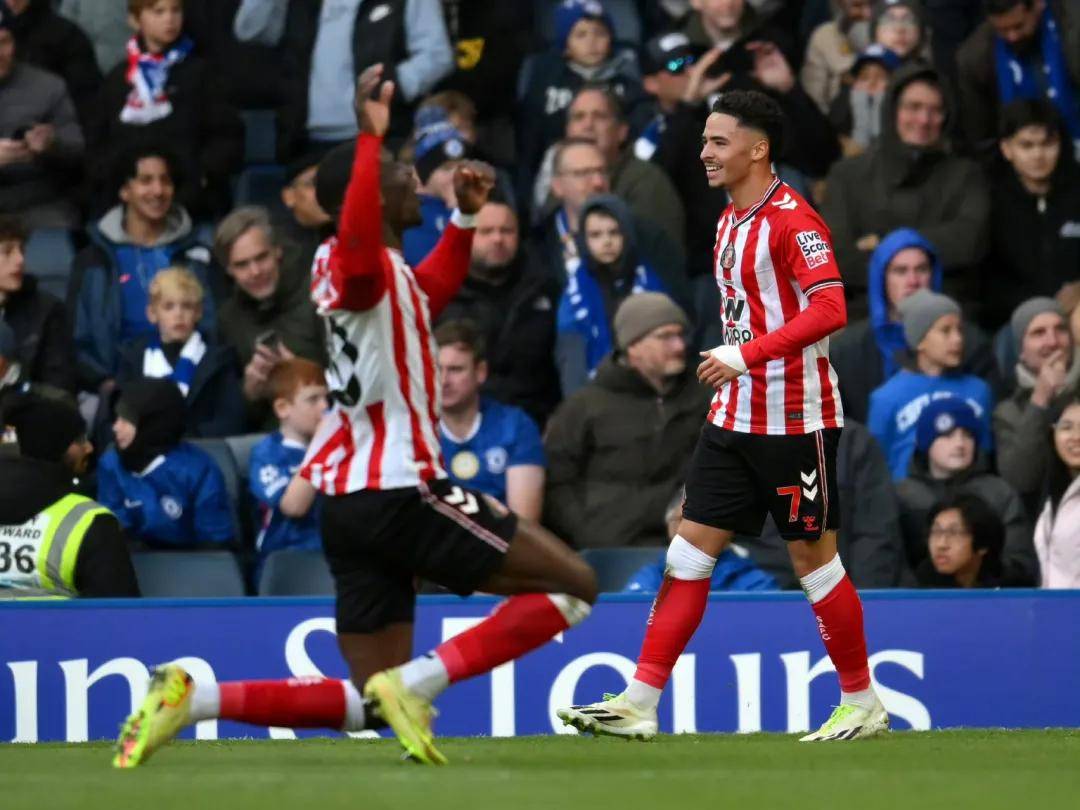 อย่างไรก็ตาม ซันเดอร์แลนด์โต้กลับอย่างรวดเร็ว ในนาทีที่ 22 พวกเขาใช้ประโยชน์จากลูกเตะมุมเพื่อสร้างความวุ่นวายในเขตโทษ โดยอิซิดอร์ฉวยโอกาสทำประตูตีเสมอเป็น 1-1 สถานการณ์ยังคงเสมอกันในครึ่งหลัง โดยทั้งสองฝ่ายไม่สามารถเปลี่ยนแปลงสกอร์ที่เสมอกันได้อย่างไรก็ตาม ในช่วงทดเวลาบาดเจ็บ ซันเดอร์แลนด์ได้บอลจากโบรเบย์ในกรอบเขตโทษ และทาเล็บยิงประตูชัยอย่างใจเย็น ทำให้แมวดำพลิกกลับมาเอาชนะเชลซี 2-1 และคว้าสามแต้มไปครอง