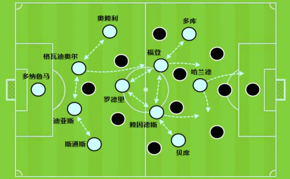 ต่อมา ภายใต้แรงกดดันจากกองหลังสามคน เขาได้เล่นบอลออกจากอันตรายอย่างรวดเร็ว นี่ถือเป็นจุดสำคัญที่ต้องปรับปรุงสำหรับฮาแลนด์: เขาไม่เพียงแต่สามารถทำประตูได้เท่านั้น แต่ยังสามารถมีส่วนร่วมในหน้าที่การป้องกันอย่างแข็งขัน พร้อมทั้งส่งบอลคุณภาพให้กับเพื่อนร่วมทีมในระหว่างการโต้กลับ และเชื่อมโยงการเล่นได้อย่างมีประสิทธิภาพ