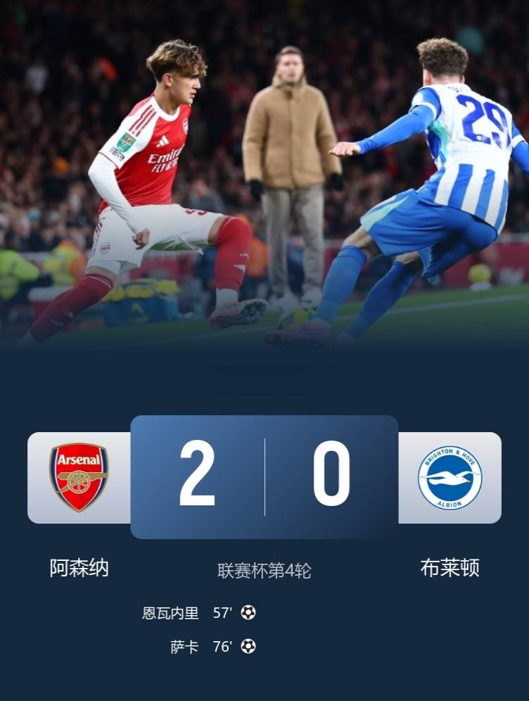 ในการแข่งขันลีกคัพ รอบสี่เดียวกัน อาร์เซนอลก็เลือกใช้ผู้เล่นหมุนเวียนเช่นกัน แต่ยังสามารถคว้าชัยชนะในบ้านเหนือไบรท์ตันได้อย่างสบายๆ 2-0 โดยไม่ต้องออกแรงมากนัก ทำให้พวกเขาขยายสถิติชนะติดต่อกันในทุกรายการเป็น 8 นัด แฟนบอลต่างแซวว่า มิเกล อาร์เตต้า ได้เห็นแสงสว่างแล้ว: ผู้เล่นตัวหลักได้พัก ตัวสำรองได้ลงสนามเก็บประสบการณ์ ทีมก็คว้าชัยชนะ และที่สำคัญคือพวกเขาไม่เสียประตูอีกด้วย