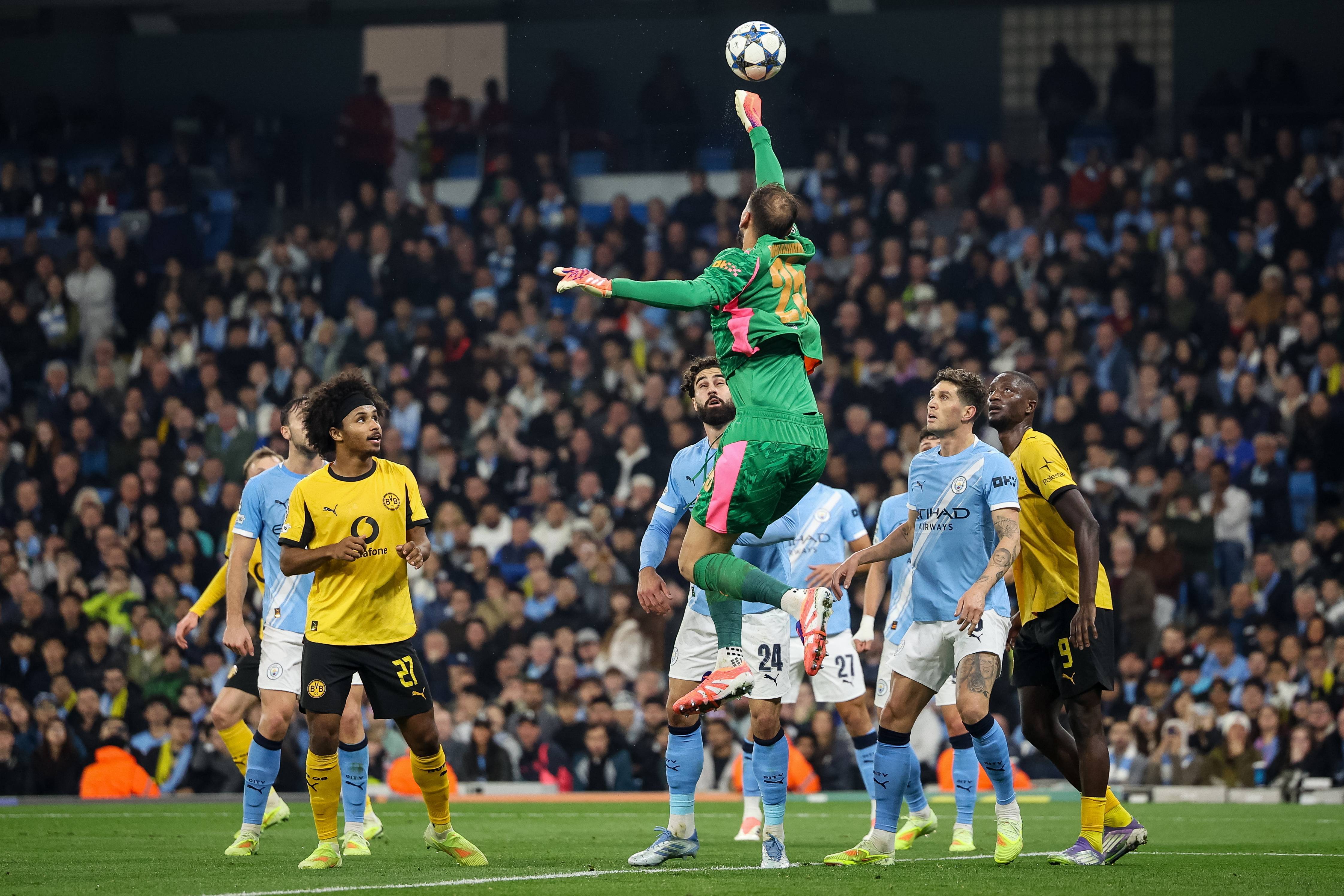 เมื่อวันที่ 5 พฤศจิกายน กอนซาเลซของแมนเชสเตอร์ ซิตี้ (ซ้าย) เข้าปะทะกับจิโรด์ของโบรุสเซีย ดอร์ทมุนด์ ซีเอ็นเอ/อีพีเอ