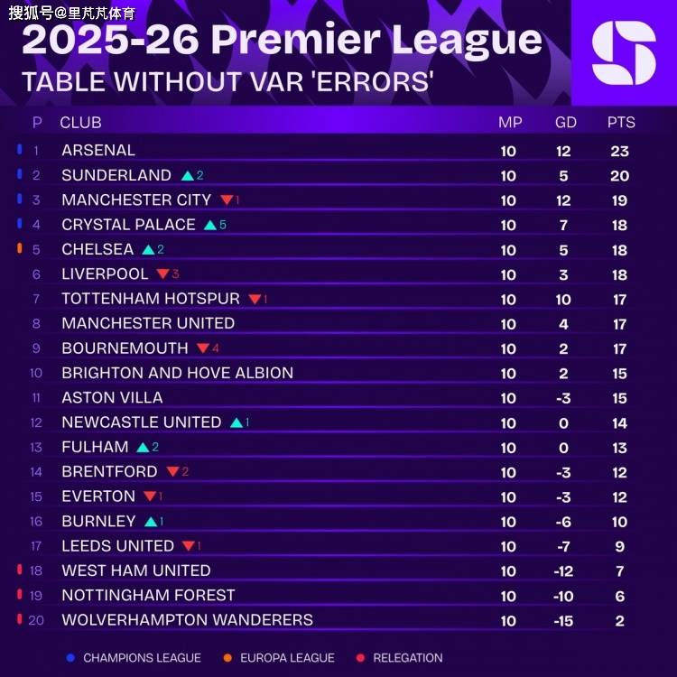 ตารางคะแนนพรีเมียร์ลีกของ Squawka ที่ไม่รวมการตัดสินที่มีการโต้แย้งจาก VAR:
