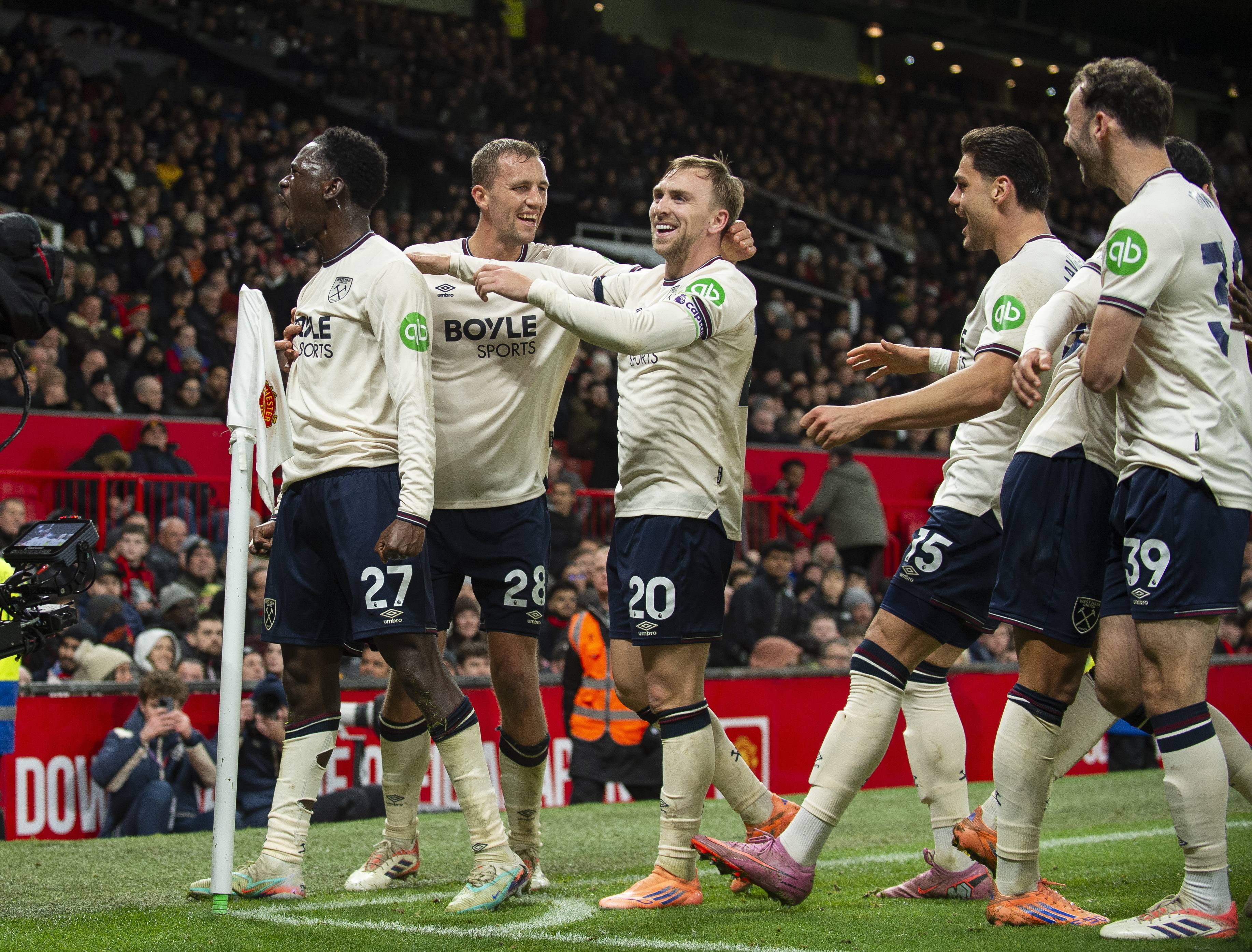 เมื่อวันที่ 4 ธันวาคม นักเตะแมนเชสเตอร์ ยูไนเต็ด ดิโอโก้ ดาโลต์ (ซ้าย) ฉลองการทำประตู Xinhua/EPA