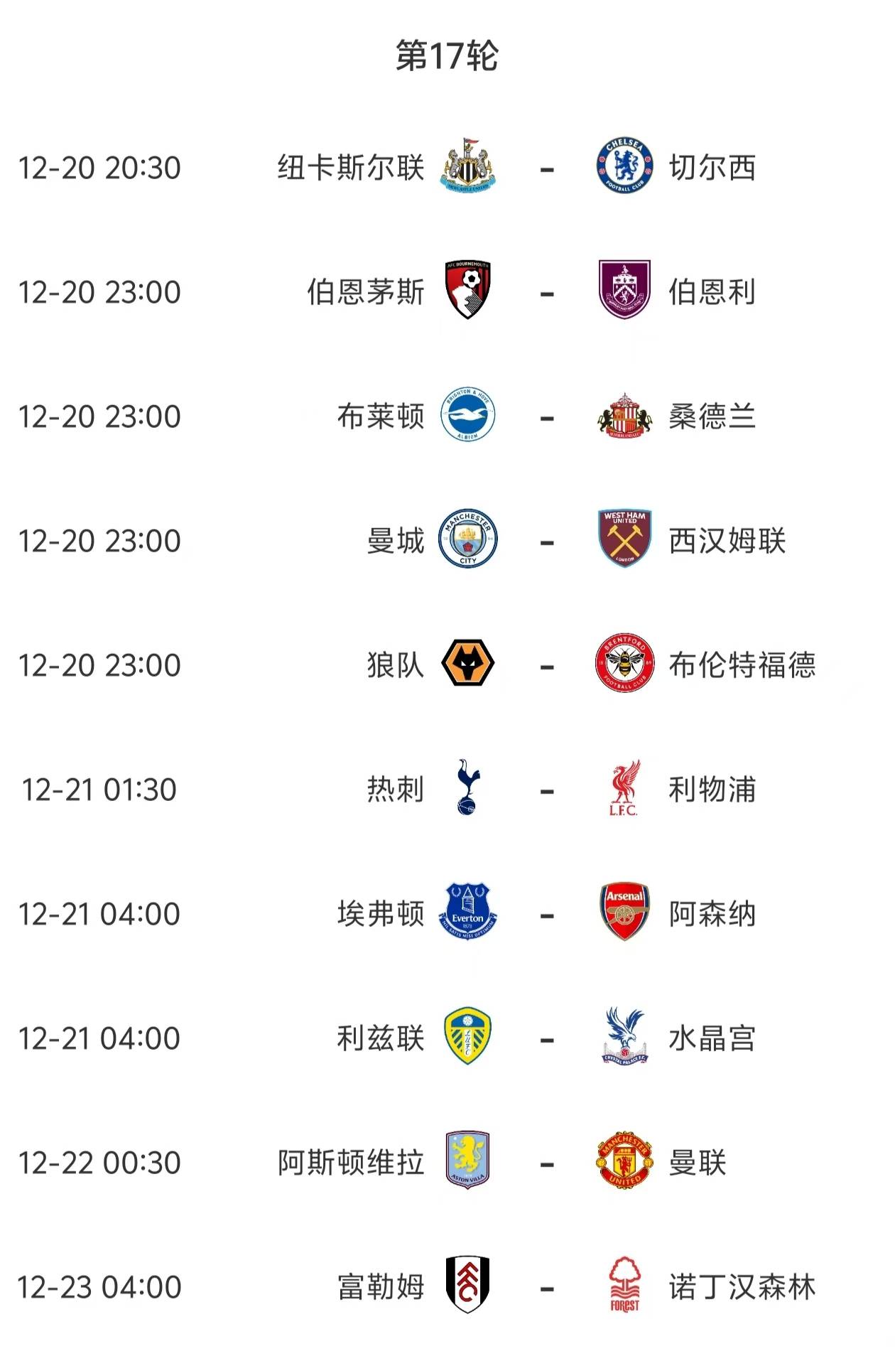 สามารถกล่าวได้อย่างยุติธรรมว่า หลังจากทุกนัดของพรีเมียร์ลีกจบลง อันดับตารางจะมีการเปลี่ยนแปลงอย่างมาก คืนนี้ เมื่อการแข่งขันนัดที่ 17 เริ่มขึ้น มาดูกันให้ละเอียดยิ่งขึ้นนิวคาสเซิล ยูไนเต็ด พบ เชลซี: ฤดูกาลที่แล้ว นิวคาสเซิลเป็นทีมที่น่าเกรงขาม แต่ในฤดูกาลนี้ฟอร์มของพวกเขามีความผันผวนอย่างมาก เชลซีทำผลงานได้ดีโดยรวม แม้ว่าจะเหมือนกับท็อตแน่ม ฮ็อทสเปอร์ ที่ขึ้นชื่อเรื่องความคาดเดาไม่ได้ก็ตาม ในการพบกันหกครั้งล่าสุด นิวคาสเซิลมีความได้เปรียบด้วยชัยชนะสามครั้ง เสมอหนึ่งครั้ง และแพ้สองครั้ง การแข่งขันนี้ดูเหมือนจะสูสีกัน โดยคาดการณ์ผลสกอร์ที่ 2-1, 1-1 หรือ 1-2