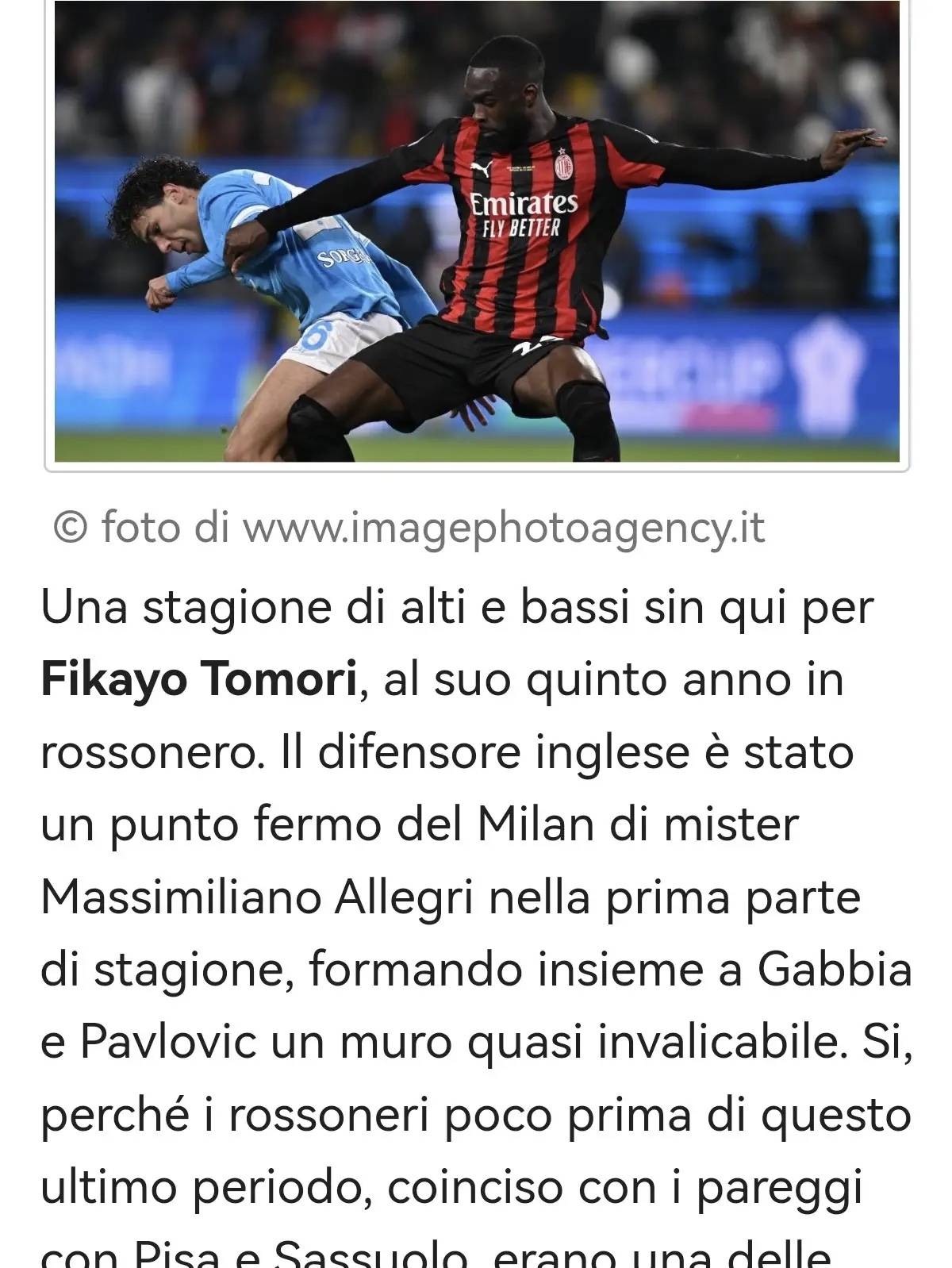 สำหรับฟิกาโย โทโมริ ซึ่งปัจจุบันอยู่ในฤดูกาลที่ห้าของเขากับรอสโซเนรี ฤดูกาลนี้ถือเป็นการแข่งขันที่มีความผันผวนอย่างมากจนถึงขณะนี้ กองหลังชาวอังกฤษรายนี้เป็นตัวจริงที่ไร้ข้อกังขาสำหรับมิลานของอัลเลกรีในช่วงครึ่งแรกของฤดูกาล โดยสร้างแนวรับที่แทบจะทะลวงไม่เข้ากับกัตเบียและปาฟโลวิช