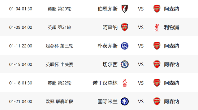 อย่างไรก็ตาม อาร์เซนอลต้องไม่ประมาท เพราะตอนนี้พวกเขาต้องเผชิญกับตารางการแข่งขันที่หนักหน่วง เริ่มตั้งแต่สุดสัปดาห์นี้และสิ้นสุดด้วยการแข่งขันนัดเยือนในศึกยูฟ่า แชมเปียนส์ลีกกับอินเตอร์ มิลาน ทีมปืนใหญ่จะต้องลงแข่งขันถึงหกนัดที่ท้าทายภายในระยะเวลาประมาณ 17 วัน แม้ว่าบอร์นมัธอาจไม่ถูกมองว่าเป็นคู่แข่งที่น่ากลัว แต่พวกเขาก็เพิ่งแพ้เพียงนัดเดียวจากเก้านัดในบ้านฤดูกาลนี้ ฤดูกาลที่แล้ว อาร์เซนอลพ่ายแพ้ในการแข่งขันนัดเยือนกับทีมนี้ และพวกเขามีความเสี่ยงที่จะเสียคะแนนอีกครั้งในนัดนี้การแข่งขันนัดถัดไปกับลิเวอร์พูลก็อาจสร้างความลำบากได้เช่นกัน หลังจากนั้น อาร์เซนอลจะต้องลงแข่งขันในศึกเอฟเอคัพ ซึ่งพอร์ทสมัธ แม้จะเป็นทีมจากลีกต่ำกว่า แต่ก็อาจสร้างเซอร์ไพรส์ได้ เอฟเอคัพขึ้นชื่อเรื่องความไม่แน่นอน และอาร์เซนอลเสี่ยงที่จะพลาดท่าหากหมุนเวียนผู้เล่นตัวหลักมากเกินไป นัดแรกในรอบรองชนะเลิศลีกคัพกับเชลซีก็เป็นอีกหนึ่งเกมที่อาร์เซนอลไม่สามารถพลาดได้เช่นกัน