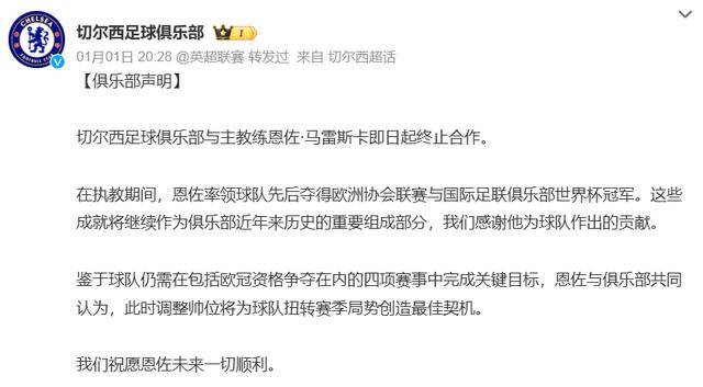ก่อนอื่น มาดูกันที่กลยุทธ์อันชาญฉลาดของเชลซี ข่าวที่ออกมาในค่ำคืนของวันที่ 1 มกราคม ทำให้แฟนบอลหลายคนยิ้มอย่างรู้กัน เชลซีได้ประกาศอย่างเป็นทางการถึงการยุติความร่วมมือกับผู้จัดการทีมคนปัจจุบัน เมาริซิโอ มาราสกา