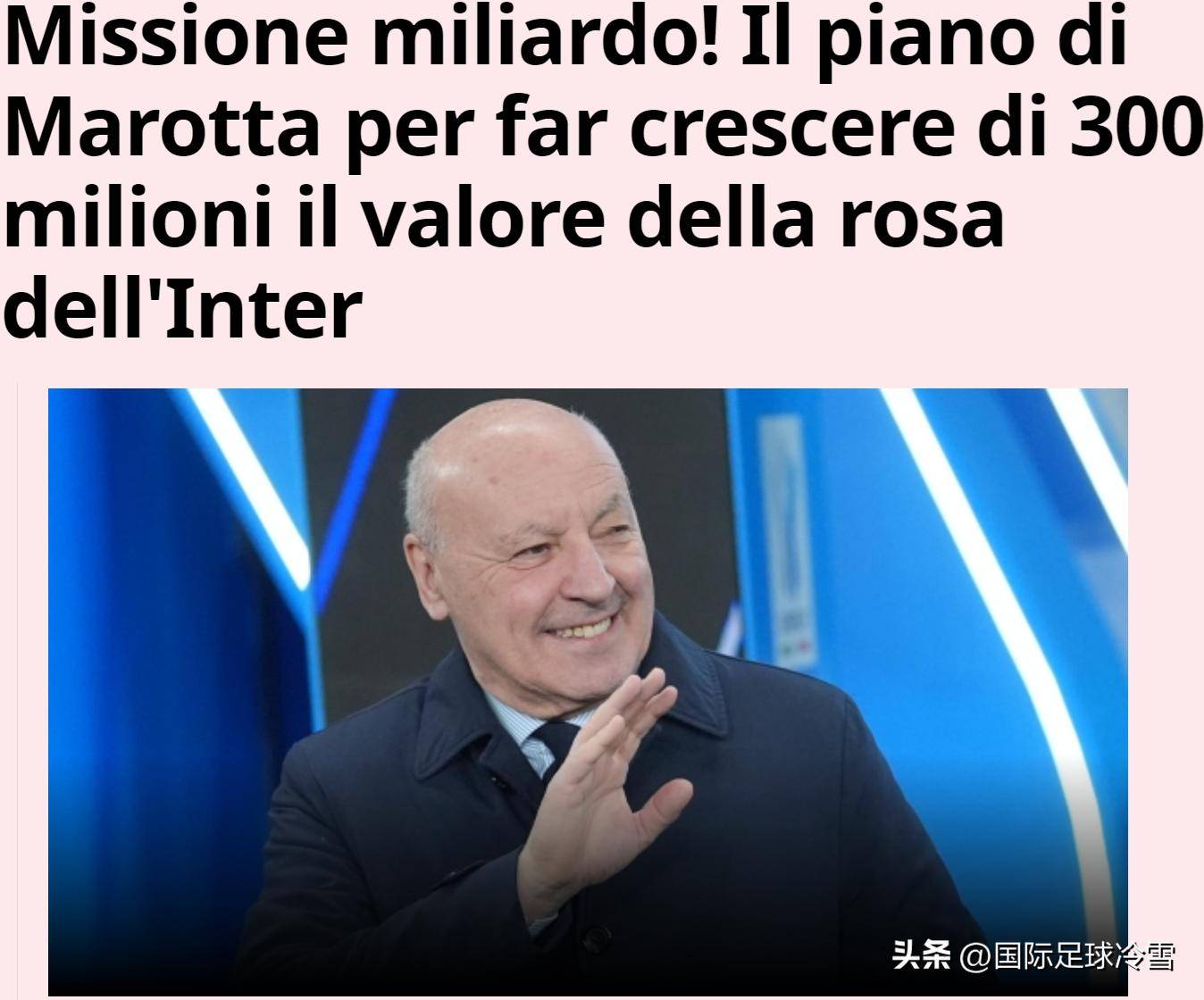 เมื่อปีเก่าใกล้จะสิ้นสุดและปีใหม่กำลังจะเริ่มต้นขึ้น La Gazzetta dello Sport ได้เน้นย้ำในบทความที่มีชื่อว่า "ภารกิจ 1 พันล้านยูโร" ว่า Oaktree Capital ได้มอบหมายให้ Giuseppe Marotta เพิ่มมูลค่าของอินเตอร์ มิลาน – โดยเฉพาะมูลค่าโดยรวมของผู้เล่น – ให้เพิ่มขึ้นอีก 300 ล้านยูโร เพื่อให้ถึงหลักสิบพันล้านยูโร