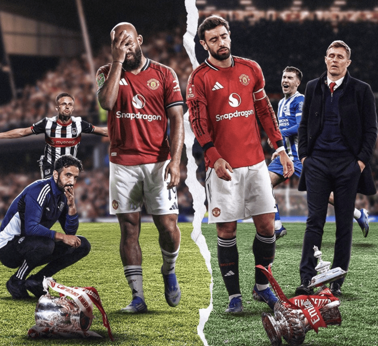 แมนเชสเตอร์ ยูไนเต็ด เพิ่งเผชิญกับความวุ่นวายอย่างมาก หลังจากมีความไม่พอใจต่อคำพูดของอาเมอร์ในงานแถลงข่าว คณะกรรมการได้ตัดสินใจปลดเขาออกจากตำแหน่งอย่างไม่ปรานี เฟลตเชอร์ได้เข้ามารับหน้าที่คุมทีมชั่วคราว ในการแข่งขันนัดนี้ ยูไนเต็ดต้องเผชิญหน้ากับคู่ปรับตลอดกาลอย่างไบรท์ตัน และตกเป็นฝ่ายตามหลังตลอดทั้งเกม เซอร์ อเล็กซ์ เฟอร์กูสัน ผู้จัดการทีมในตำนานของยูไนเต็ด และพอล สโคลส์ อดีตนักเตะของทีม ได้ชมการแข่งขันจากบนอัฒจันทร์