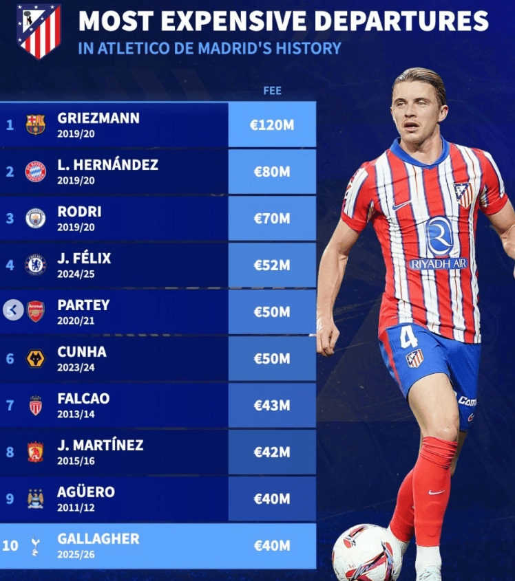 เมื่อวันที่ 15 มกราคม ตามเวลาปักกิ่ง สโมสรฟุตบอลพรีเมียร์ลีก ท็อตแน่ม ฮ็อทสเปอร์ ได้ประกาศอย่างเป็นทางการถึงการเซ็นสัญญากับกองกลางชาวอังกฤษ คอนอร์ กัลลาเกอร์ จากแอตเลติโก มาดริด รายงานระบุว่าค่าตัวในการย้ายทีมอยู่ที่ 40 ล้านยูโร ซึ่งนับเป็นการขายผู้เล่นที่มีมูลค่าสูงสุดอันดับที่ 10 ในประวัติศาสตร์ของแอตเลติโก มาดริด และการเซ็นสัญญาที่มีมูลค่าสูงสุดอันดับที่ 11 ในประวัติศาสตร์ของท็อตแน่ม ฮ็อทสเปอร์