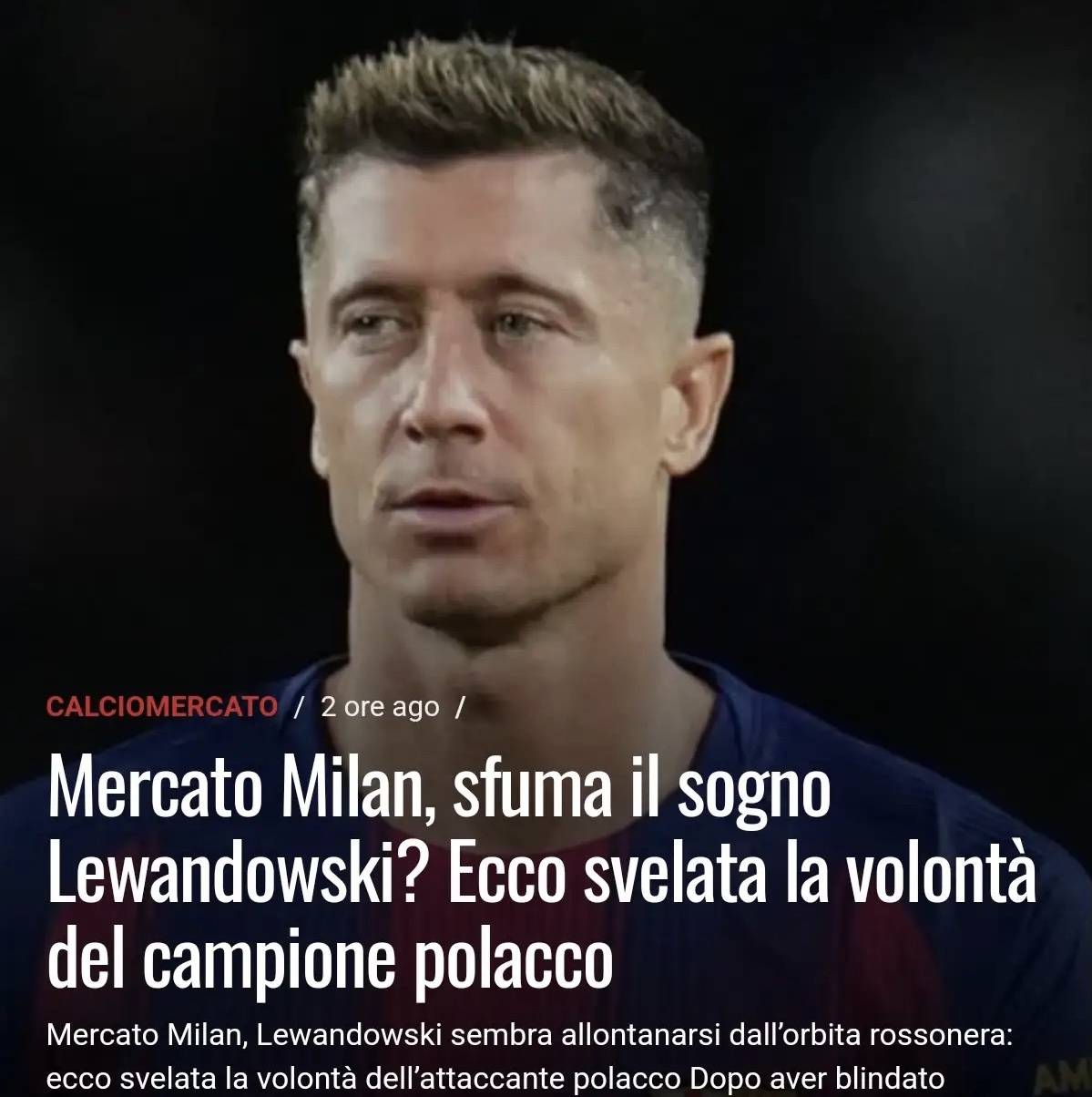 หลังจากที่มิลานได้ตัวนิโคลัส เฟอร์ครูคมาเสริมทัพแบบไม่มีค่าตัวเพื่อเพิ่มตัวเลือกในแนวรุกแล้ว มัสซิมิเลียโน่ อัลเลกรี ยังคงมุ่งมั่นที่จะคว้าตัวนักเตะระดับซูเปอร์สตาร์มาร่วมทีมต่อไป เป้าหมายที่แฟนบอลต้องการมากที่สุดยังคงเป็นโรเบิร์ต เลวานดอฟสกี้ กองหน้าชาวโปแลนด์ที่ยังมีสัญญากับบาร์เซโลนาจนถึงปี 2026