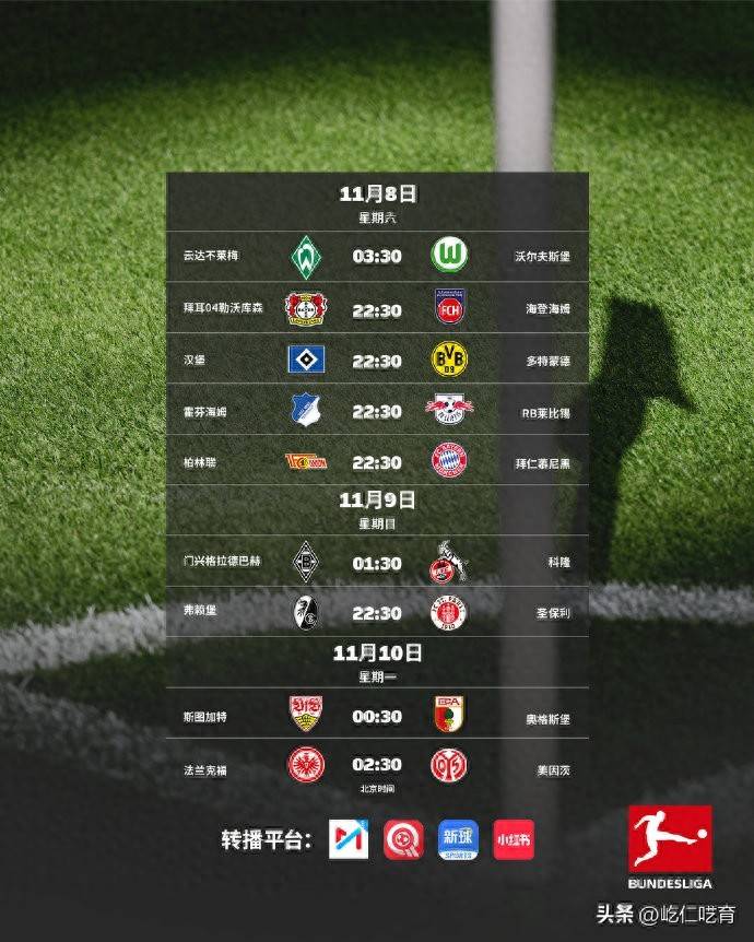ตั้งแต่เวลา 03:30 น. ของวันที่ 8 พฤศจิกายน ถึงเวลา 02:30 น. ของวันที่ 10 พฤศจิกายน ตามเวลาปักกิ่ง การแข่งขันบุนเดสลีกาฤดูกาล 2025-2026 รอบที่สิบจะเริ่มขึ้นในช่วงสุดสัปดาห์ที่สองของเดือนพฤศจิกายนในรอบการแข่งขันนี้ บาเยิร์น มิวนิก จะเดินทางออกไปเยือนยูเนียน เบอร์ลิน เพื่อไล่ล่าชัยชนะติดต่อกันเป็นนัดที่ 17 ขณะที่ แอร์เบ ไลป์ซิก และโบรุสเซีย ดอร์ทมุนด์ ก็ต้องเผชิญความท้าทายนอกบ้านเช่นกัน โดยจะพบกับฮอฟเฟ่นไฮม์และฮัมบูร์กตามลำดับ