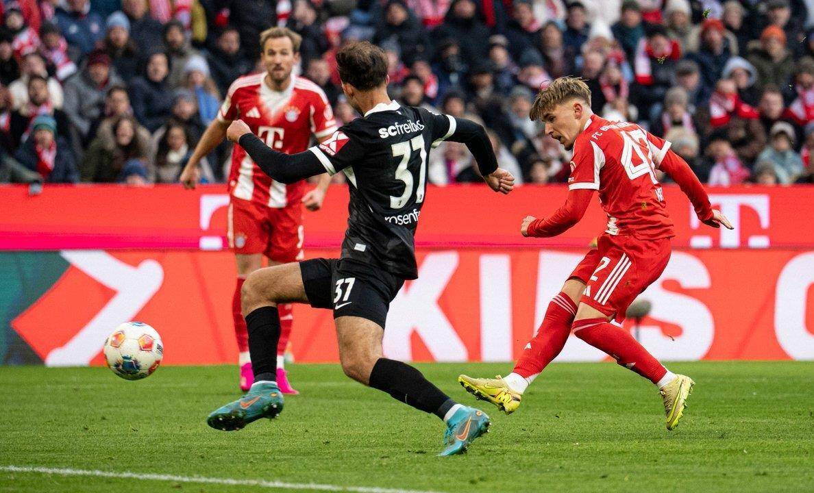 ในช่วงทดเวลาบาดเจ็บของครึ่งแรก โอลิเซ่ทะลุเข้าไปในกรอบเขตโทษ คว้าบอลจากการจ่ายย้อนของคาลเวิร์ต-ลูวิน ก่อนยิงเสียบมุมใกล้เข้าไปอย่างเฉียบขาด! 2-2! บรรยากาศที่อึดอัดในอัลลิอันซ์ อารีน่าระเบิดออกมาในทันที บางคนโบกผ้าพันคอและกรีดร้อง บางคนชี้ไปที่สกอร์บอร์ดและหัวเราะอย่างสนุกสนาน – นี่คือสีหน้าและท่าทางที่เหมาะสมกับแชมป์บุนเดสลีกาที่ครองตำแหน่งอยู่ในขณะนี้
