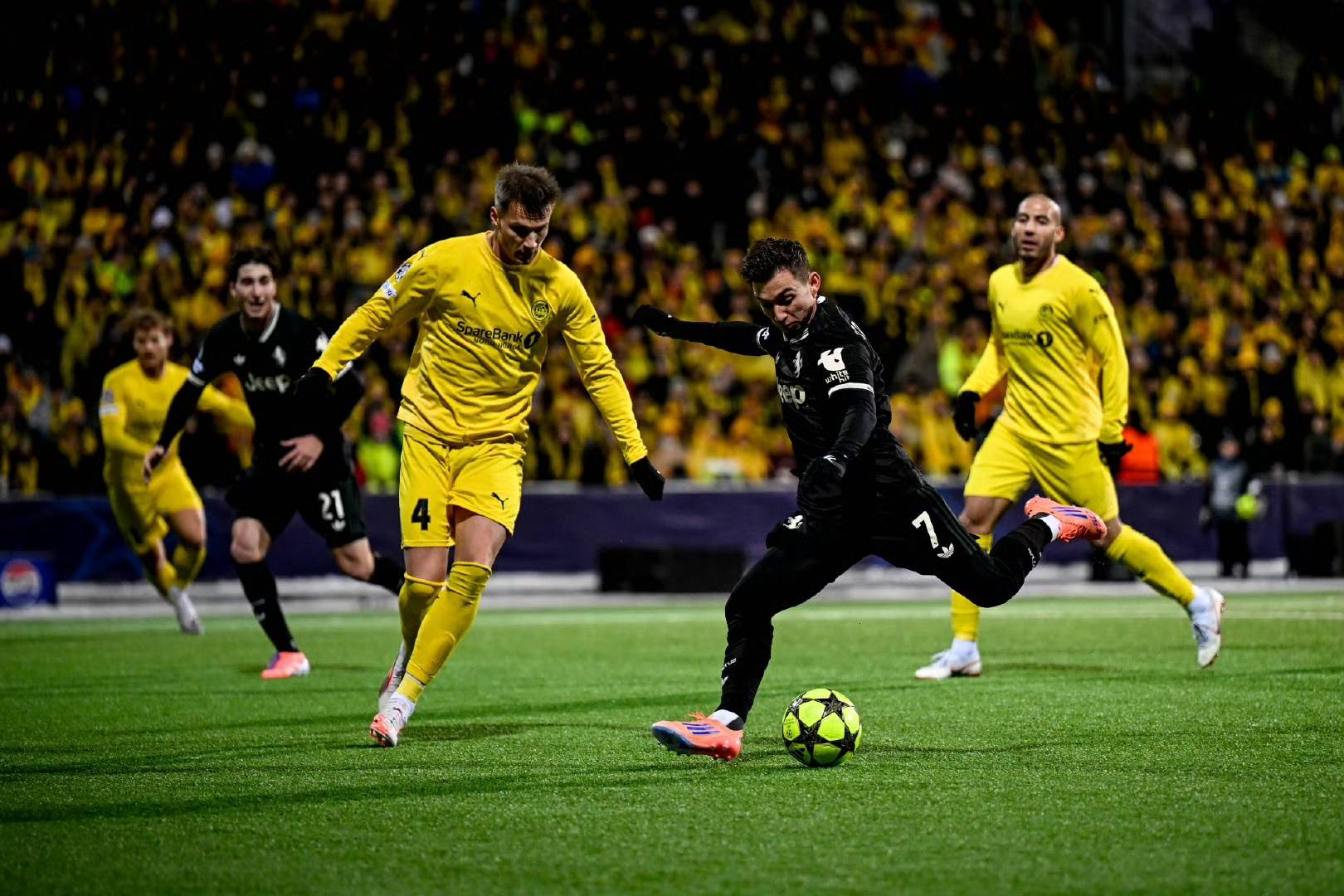 ทีมชาวนอร์เวย์ที่แข็งแกร่งอย่าง Bodø/Glimt แสดงผลงานในบ้านได้อย่างยอดเยี่ยม แสดงให้เห็นถึงความกล้าหาญและความมุ่งมั่นตลอดการแข่งขัน การส่งบอลและการเคลื่อนไหวที่เป็นระบบของพวกเขาจบลงด้วยลูกเตะมุมที่เปิดเกมรับของฝ่ายตรงข้ามได้สำเร็จ โดย Blomberg เป็นผู้ทำประตูแรกให้กับเจ้าบ้าน ยูเวนตุสซึ่งเห็นได้ชัดว่ากำลังประสบปัญหาในการปรับตัวกับสภาพแวดล้อม ใช้เวลานานกว่าปกติในการหาจังหวะการเล่นที่เหมาะสม การหมุนเวียนผู้เล่นในทีมทำให้พวกเขาดูไม่ประสานกันและไม่สามารถสร้างโอกาสที่มีนัยสำคัญได้เป็นเวลานาน