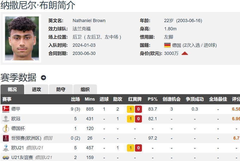 ทีมตัวแทนของบราวน์กำลังรักษาโปรไฟล์ต่ำอยู่ในขณะนี้ โดยระบุว่านักเตะยังคงมุ่งมั่นกับโปรแกรมการแข่งขันของแฟรงค์เฟิร์ต อย่างไรก็ตาม แหล่งข่าวที่เชื่อถือได้ระบุว่าตัวแทนได้เริ่มการเจรจาเบื้องต้นกับสามสโมสรใหญ่ในยุโรปเพื่อประเมินเจตนาเฉพาะและเสนอเงื่อนไข ในแง่การเงิน หากการย้ายทีมของบราวน์ในที่สุดมีมูลค่าเกิน 60 ล้านยูโร จะถือเป็นการที่แฟรงค์เฟิร์ตได้รับผลตอบแทนจากการลงทุนมากกว่า 20 เท่าภายใน 18 เดือนโมเดลการซื้อขายนักเตะที่มีประสิทธิภาพสูงนี้เป็นกุญแจสำคัญที่ช่วยให้สโมสรระดับกลางสามารถรักษาความสามารถในการแข่งขันได้ สถิติจากบุนเดสลีกาเผยให้เห็นว่า บราวน์เป็นหนึ่งในกองหลังดาวรุ่งที่โดดเด่นที่สุดของฤดูกาลนี้ เขาอยู่ในอันดับท็อปไฟว์ของตำแหน่งเดียวกันในหลายสถิติสำคัญ รวมถึงการตัดบอลเฉลี่ยต่อเกมและอัตราการผ่านบอลสำเร็จ ข้อมูลเชิงประจักษ์เหล่านี้เป็นเหตุผลที่แข็งแกร่งในการสนับสนุนราคาขายที่สูงของแฟรงค์เฟิร์ต ผู้เชี่ยวชาญตลาดการซื้อขายนักเตะในยุโรปสังเกตว่าในขณะที่ตลาดหลังการระบาดของโรคกำลังฟื้นตัวอย่างค่อยเป็นค่อยไป การใช้จ่ายของสโมสรได้กลายเป็นเรื่องที่มีเหตุผลมากขึ้น ในสภาพเช่นนี้ นักเตะหนุ่มอย่างบราวน์ที่ได้พิสูจน์คุณค่าของตัวเองแล้วได้รับความนิยมเพิ่มขึ้น เนื่องจากพวกเขามีความเสี่ยงที่ต่ำกว่าเมื่อเทียบกับนักเตะคนอื่น ๆ บราวน์ยังได้รับการยกย่องอย่างสูงในห้องแต่งตัวของเอฟเซ ไฟร์บวร์กเช่นกัน โดยเพื่อนร่วมทีมต่างชื่นชมในวินัยการฝึกซ้อมที่เข้มงวดและทัศนคติที่ถ่อมตัวของเขา ผู้จัดการทีมได้กล่าวชมเชยในความเป็นมืออาชีพของเขาอย่างเปิดเผยหลายครั้ง และเชื่อว่าเขามีคุณสมบัติครบถ้วนที่จะก้าวขึ้นเป็นนักเตะระดับแนวหน้าได้