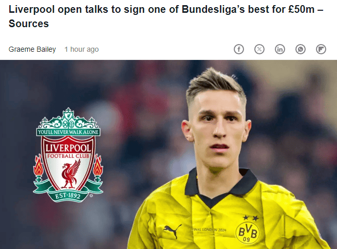 เมื่อวันที่ 9 ธันวาคม ตามเวลาปักกิ่ง แหล่งข่าวได้แจ้งกับสำนักข่าว TEAMtalk ของอังกฤษว่า ลิเวอร์พูลได้เริ่มการเจรจาเบื้องต้นเกี่ยวกับการเซ็นสัญญากับ นิโค ชล็อตเทอร์เบ็ค กองหลังของโบรุสเซีย ดอร์ทมุนด์ ตัวแทนของนักเตะได้พูดคุยเบื้องต้นกับหลายสโมสรเพื่อเตรียมความพร้อมสำหรับการย้ายทีมที่อาจเกิดขึ้นในช่วงซัมเมอร์ปี 2026 โดยมีลิเวอร์พูลเป็นหนึ่งในทีมที่สนใจ