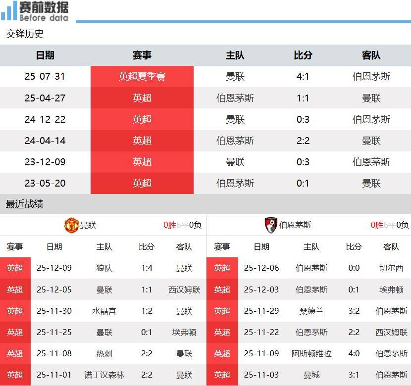 เวลา 21:30 น. ตามเวลาปักกิ่ง วันที่ 16 ธันวาคม การแข่งขันนัดสุดท้ายของรอบที่ 16 ของพรีเมียร์ลีก แมนเชสเตอร์ ยูไนเต็ด จะเปิดบ้านรับการมาเยือนของบอร์นมัธ