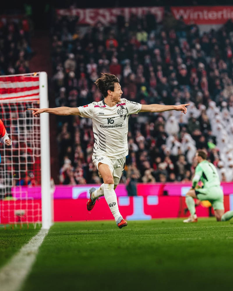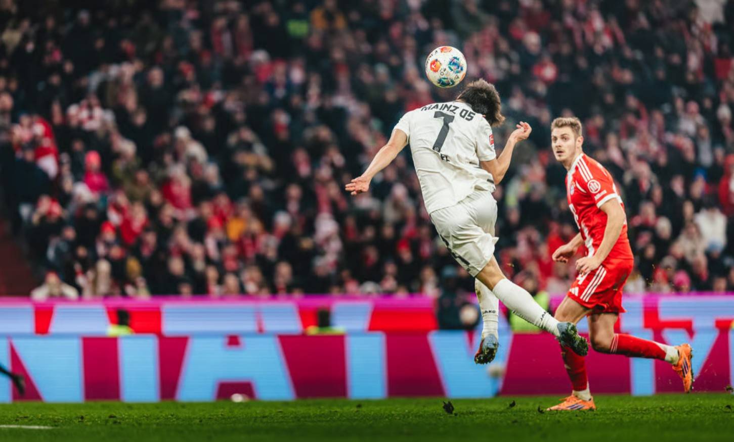ช่วงเวลาที่ทำให้แฟนบอลชาวเกาหลีใต้ตื่นเต้นมาถึงในครึ่งหลัง! เมื่อไมนซ์ไม่ยอมที่จะยอมรับผลเสมอ พวกเขาเปิดฉากโจมตีบาเยิร์นอย่างต่อเนื่อง ขณะที่อี แจ-ซุง เคลื่อนตัวเข้าสู่ตำแหน่งกองหน้าตัวเป้าในนาทีที่ 67 สเตฟาน เบลล์ กองหลังตัวกลางของไมนซ์ เปิดบอลยาวเข้าไปทางด้านขวาของเขตโทษฝั่งตรงข้าม ลี แจ-ซอง วิ่งฉับไว แซงหน้าสตานิสลาฟ ซานซิช แบ็กขวาของบาเยิร์น และเลออน โกเร็ตซ์ก้า กองกลางตัวรับ ไปถึงบอลก่อน ด้วยลูกโหม่งกระโดด เขาทำประตูได้สำเร็จ! สกอร์ตอนนี้เป็น 2-1 ให้กับไมนซ์ นี่เป็นประตูที่สองของลี แจ-ซอง ในฤดูกาลนี้ ต่อจากประตูที่เขาทำได้ในเกมพบกับไบเออร์ เลเวอร์คูเซ่น เมื่อวันที่ 18 ตุลาคมลูกโหม่งนี้พาเขาย้อนกลับไปยังวันเวลาที่เขาเล่นเป็นกองหน้าตัวเป้าให้กับโฮลสไตน์ เคียล ในบุนเดสลีกา 2 ซึ่งลูกยิงแบบนี้เป็นลายเซ็นของเขา ตอนนี้ ในช่วงเวลาที่ทีมต้องการความช่วยเหลือ ความสามารถในการเล่นลูกกลางอากาศของเขาได้ทำให้ทีมขึ้นนำอีกครั้ง ลีที่เต็มไปด้วยความดีใจแสดงการเฉลิมฉลองด้วยการสไลด์ตัวลงบนสนาม ราวกับว่าการพ่ายแพ้ติดต่อกันจะหยุดลงอย่างกะทันหันในคืนนั้น