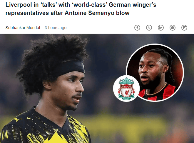 ตามรายงานของ Anfield Index สื่อที่เน้นข่าวเกี่ยวกับลิเวอร์พูล สโมสรได้จัดการ "การเจรจาเบื้องต้น" กับเอเย่นต์ของโยซูฟา อาเดมี นักเตะทีมชาติเยอรมนี ซึ่งอยู่ในรายชื่อเป้าหมายที่เป็นไปได้ของลิเวอร์พูลสำหรับการซื้อขายนักเตะในเดือนมกราคม อาเดเยมีอยู่กับโบรุสเซีย ดอร์ทมุนด์ตั้งแต่ปี 2022 โดยสัญญาของเขามีอายุถึงฤดูร้อนปี 2027 นักเตะปีกวัย 23 ปีรายนี้ทำประตูได้ 32 ประตู และแอสซิสต์ 22 ครั้ง จากการลงเล่นให้กับสโมสร 129 นัด นิโก้ โควัช ผู้จัดการทีมดอร์ทมุนด์ เป็นผู้ชื่นชมอาเดเยมีอย่างแรงกล้า โดยยกย่องนักเตะปีกคนนี้ว่าเป็นนักเตะระดับโลก