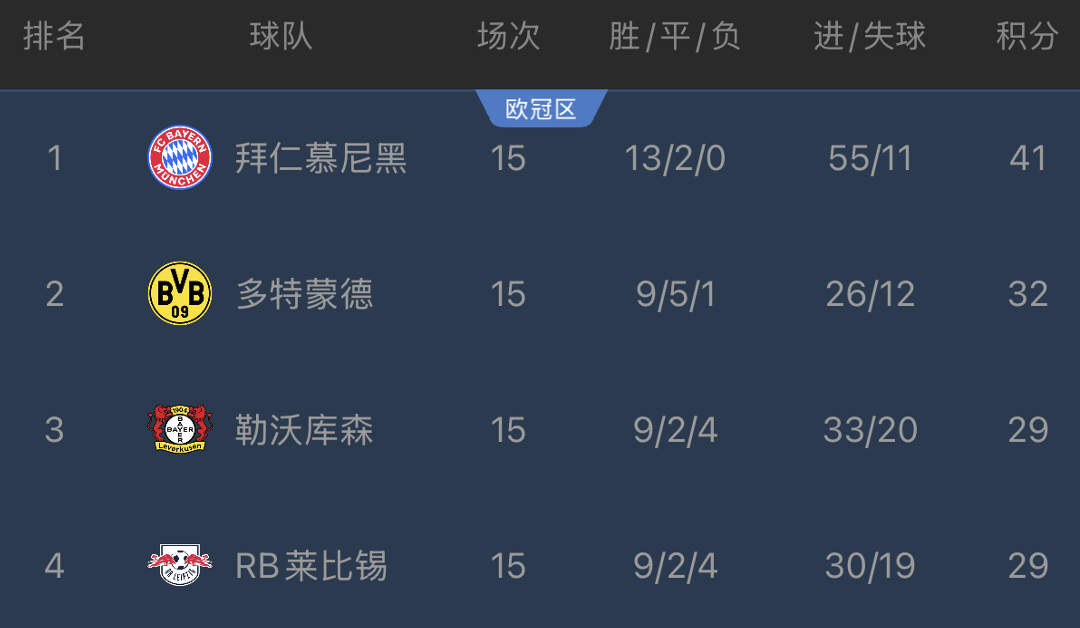 สุดท้ายนี้ เมื่อมองไปที่บุนเดสลีกา บาเยิร์น มิวนิค คว้าชัยชนะอย่างถล่มทลาย 4-0 ในการออกไปเยือนไฮเดนไฮม์ในนัดที่ 15 หลังจากผลการแข่งขันนี้ บาเยิร์นครองตำแหน่งจ่าฝูงด้วย 41 คะแนนจาก 13 ชัยชนะและ 2 เสมอจากการแข่งขัน 15 นัด โบรุสเซีย ดอร์ทมุนด์ตามหลังด้วย 32 คะแนน ขณะที่ไบเออร์ เลเวอร์คูเซ่นและอาร์บี ไลป์ซิกครองอันดับสองถึงสี่ด้วยคะแนน 29 คะแนนเท่ากัน เห็นได้ชัดว่าบาเยิร์นมีคะแนนนำมากที่สุดในบรรดาห้าลีกชั้นนำของยุโรปในฤดูกาลนี้ผลต่างประตูของบาเยิร์นอยู่ที่ +44 ซึ่งน่าทึ่งมาก โดยเฉลี่ยแล้วมีผลต่างประตูต่อนัดถึง 3 ประตูต่อเกม นอกจากนี้ยังเป็นผลต่างประตูสูงสุดหลังจาก 15 นัดในประวัติศาสตร์บุนเดสลีกา นับตั้งแต่ก่อตั้งลีกในปี 1963