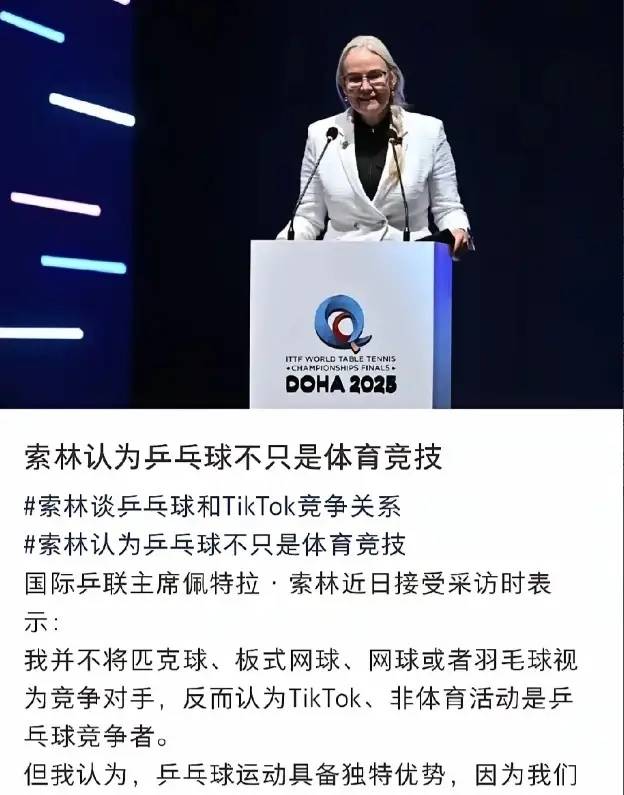 โซลิงเคยกล่าวไว้ว่าคู่แข่งที่แท้จริงของ WTT ไม่ใช่เทนนิส แต่เป็น TikTok ด้วยเหตุนี้ WTT จึงมีลักษณะคล้ายรายการวาไรตี้มากขึ้นเรื่อยๆ: การสร้างแบรนด์ของคนดัง แสงสี และการออกแบบท่าเต้นที่เน้นความบันเทิง อย่างไรก็ตาม ปัญหาพื้นฐานยังคงอยู่: ปิงปองเป็นกีฬาที่แข่งขันกันโดยพื้นฐาน ซึ่งความสามารถต้องเป็นฝ่ายชนะ