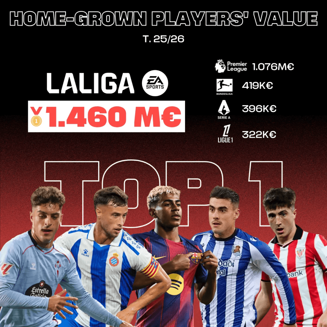 นอกจากนี้ แม้ว่าจะมีนักเตะดาวดังหลั่งไหลเข้าสู่ลาลีกาเป็นจำนวนมาก แต่ผู้เล่นที่จบจากอคาเดมีเยาวชนยังคงมีเวลาลงสนามคิดเป็น 19.8% ในฤดูกาล 2024/25 ซึ่งสูงกว่าในลีกใหญ่ของยุโรปอีกสี่ลีกอย่างมีนัยสำคัญ