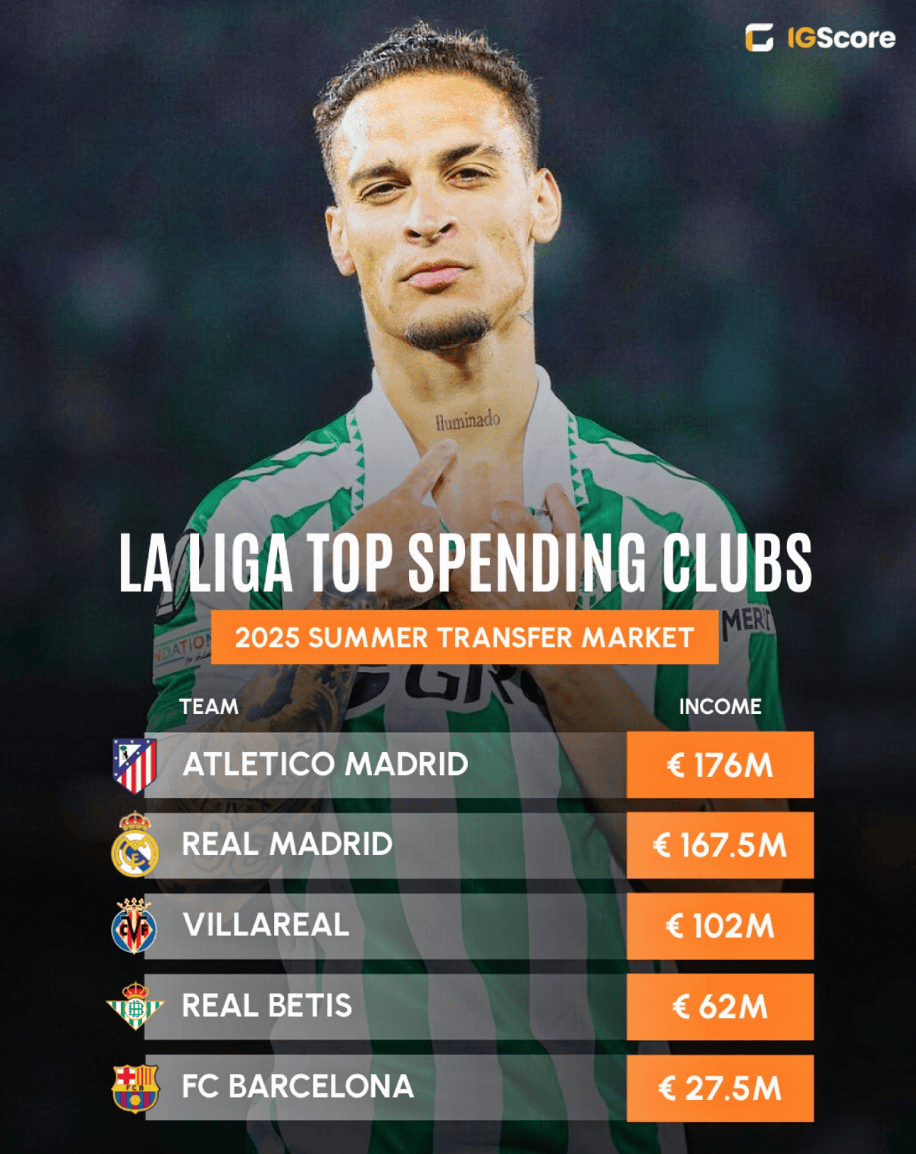 ในช่วงตลาดซื้อขายนักเตะฤดูร้อนปี 2025 สโมสรจากสเปนทำรายได้จากการขายนักเตะที่เติบโตมาจากอะคาเดมีภายในประเทศเป็นสถิติใหม่ถึง 289 ล้านยูโร ซึ่งถือเป็นสถิติสูงสุดในประวัติศาสตร์