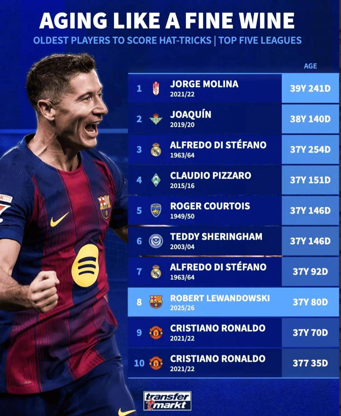 ดังนั้นคำถามจึงเกิดขึ้นอีกครั้ง: บาร์เซโลน่าควรต่อสัญญากับเลวานดอฟสกี้วัย 37 ปีหรือไม่? หากเขาอยู่กับสโมสรต่อไปในฤดูกาลหน้า เขาจะมีอายุครบ 38 ปี กรณีของคริสเตียโน โรนัลโดได้เป็นตัวอย่างให้สโมสรชั้นนำหลายแห่งเพิ่มความระมัดระวังมากขึ้นในการตัดสินใจว่าจะเก็บนักเตะอาวุโสที่มีอายุมากไว้กับทีมต่อไปหรือไม่