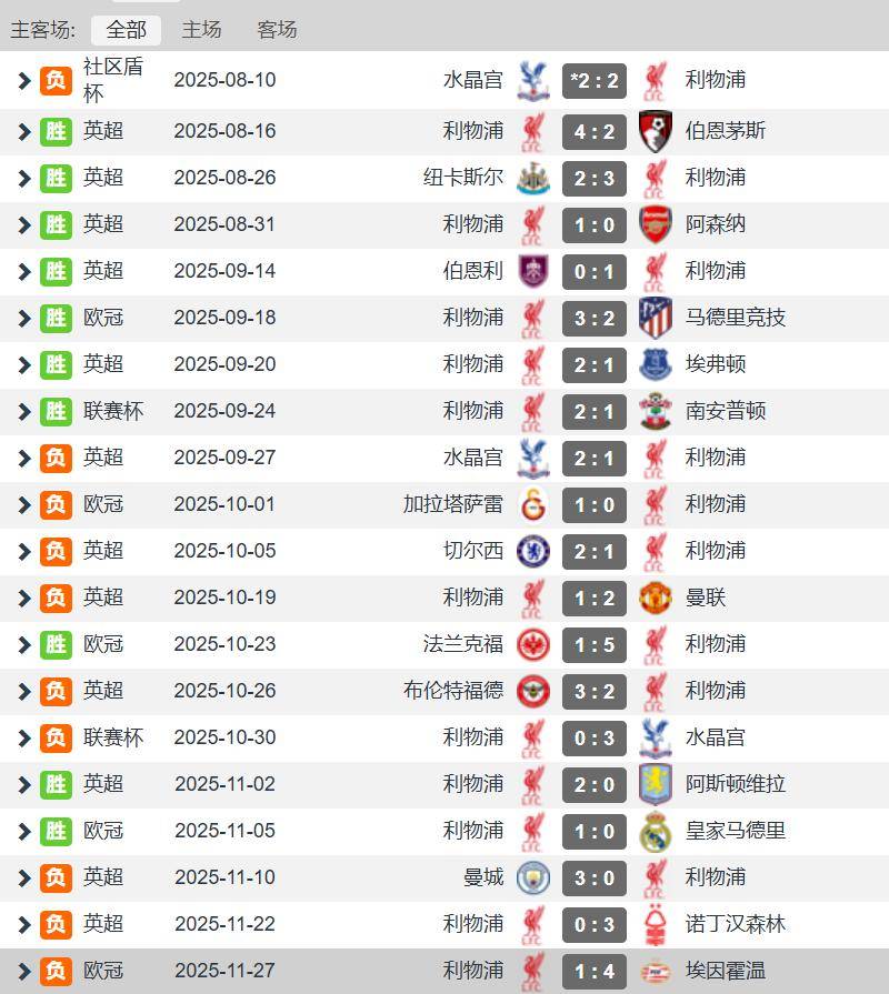 ยังมีสถิติที่น่าหดหู่: ลิเวอร์พูลแพ้ถึงเก้าครั้งจากสิบสองนัดล่าสุดในทุกรายการแข่งขัน ครั้งสุดท้ายที่สโมสรแพ้เก้าครั้งในสิบสองเกมคือระหว่างเดือนพฤศจิกายน 1953 ถึงเดือนมกราคม 1954 ซึ่งในขณะนั้นวินสตัน เชอร์ชิลล์ ยังดำรงตำแหน่งนายกรัฐมนตรีของสหราชอาณาจักร