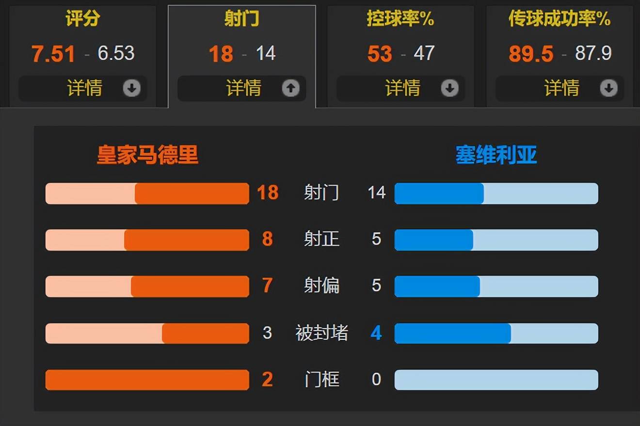 ตลอดการแข่งขัน เรอัล มาดริดครองบอล 53% ยิงทั้งหมด 18 ครั้งเข้ากรอบ 8 ครั้ง ขณะที่เซบีย่ายิงทั้งหมด 14 ครั้งเข้ากรอบ 5 ครั้งเรอัล มาดริดมีมูลค่าผู้เล่นตัวจริงรวมกันประมาณสิบเท่าของเซบีย่า แต่การแข่งขันยังคงสูสีกัน หากเรอัลต้องเผชิญกับคู่แข่งที่สูสีเช่นนี้ กลยุทธ์ของอลอนโซ่จะถูกทดสอบอย่างหนัก!