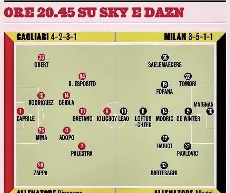 คาดการณ์ผู้เล่นตัวจริงสำหรับมิลาน vs กายารี่ เอซี มิลานต้องเผชิญกับคลื่นการบาดเจ็บอีกครั้ง โดยทั้งเอน-เนซีรีและพูลิซิช – ผู้ที่ทำผลงานได้ยอดเยี่ยมในนัดล่าสุด – ถูกตัดชื่อออกจากตัวจริงเนื่องจากปัญหาความฟิต พูลิซิชอาจจะดีขึ้นเล็กน้อยและมีรายงานว่าพร้อมนั่งสำรอง ในขณะที่เอน-เนซีรีได้กลับบ้านเพื่อพักผ่อน