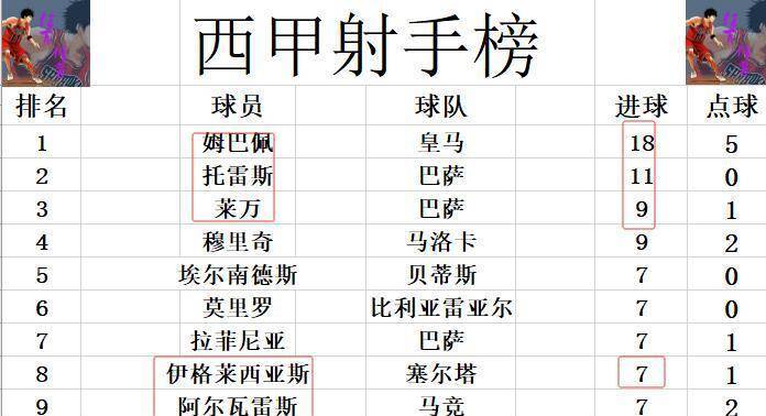 เอ็มบัปเป้ของเรอัล มาดริด ยังคงนำอยู่สบายๆ ด้วย 18 ประตู ทำให้รางวัลรองเท้าทองคำแทบจะการันตีแล้ว เฟร์ราน ตอร์เรส ของบาร์เซโลนาไม่สามารถทำประตูได้ในเกมนี้ ยังคงอยู่อันดับสองด้วย 11 ประตู ฝ่ายเลวานดอฟสกี้ปิดเกมด้วยประตูในช่วงท้าย ทำให้ยอดรวมในลีกของเขาเป็นเก้าประตู และเสมอกับมูริชของมายอร์กาในอันดับสาม โมเรโรของบียาร์เรอัลและอิเกลเซียสของเซลต้า บีโก้ (ซึ่งทำสองประตูในเกมนี้) ก็ทำประตูได้เช่นกัน ทำให้เกณฑ์สำหรับผู้ทำประตูสูงสุดสิบอันดับแรกอยู่ที่เจ็ดประตู