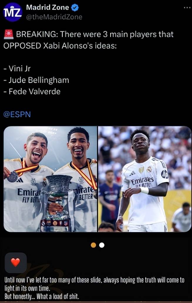 แหล่งข่าวใกล้ชิดกับอลอนโซได้เปิดเผยชื่อผู้เล่นสามคน ได้แก่ วินิซิอุส, เบลลิงแฮม และวัลแวร์เด ความขัดแย้งระหว่างวินิซิอุสกับอลอนโซเป็นที่ทราบกันมานานแล้ว ขณะที่แหล่งข่าวระบุว่าความขัดแย้งระหว่างเบลลิงแฮมกับวินิซิอุสยังไม่เคยถูกเปิดเผยต่อสาธารณะ