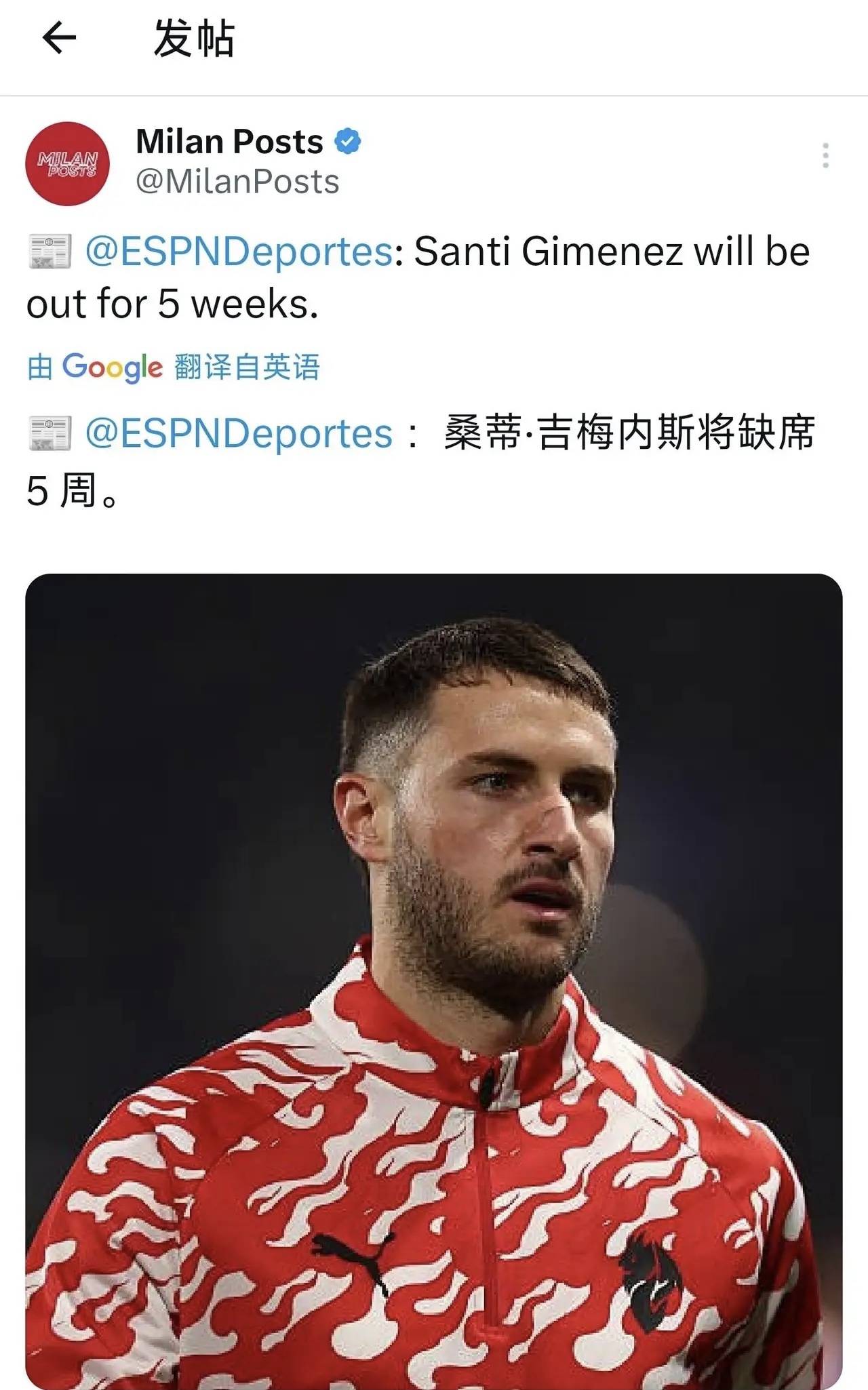Jiménez จะไม่สามารถลงเล่นได้เป็นเวลาอย่างน้อยห้าสัปดาห์เนื่องจากอาการบาดเจ็บ หลายคนได้แสดงความไม่พอใจกับผลงานของ Jiménez แต่ความจริงก็คือเขาเป็นผู้เล่นที่ทุ่มเทให้กับมิลานมากที่สุดเสมอมา