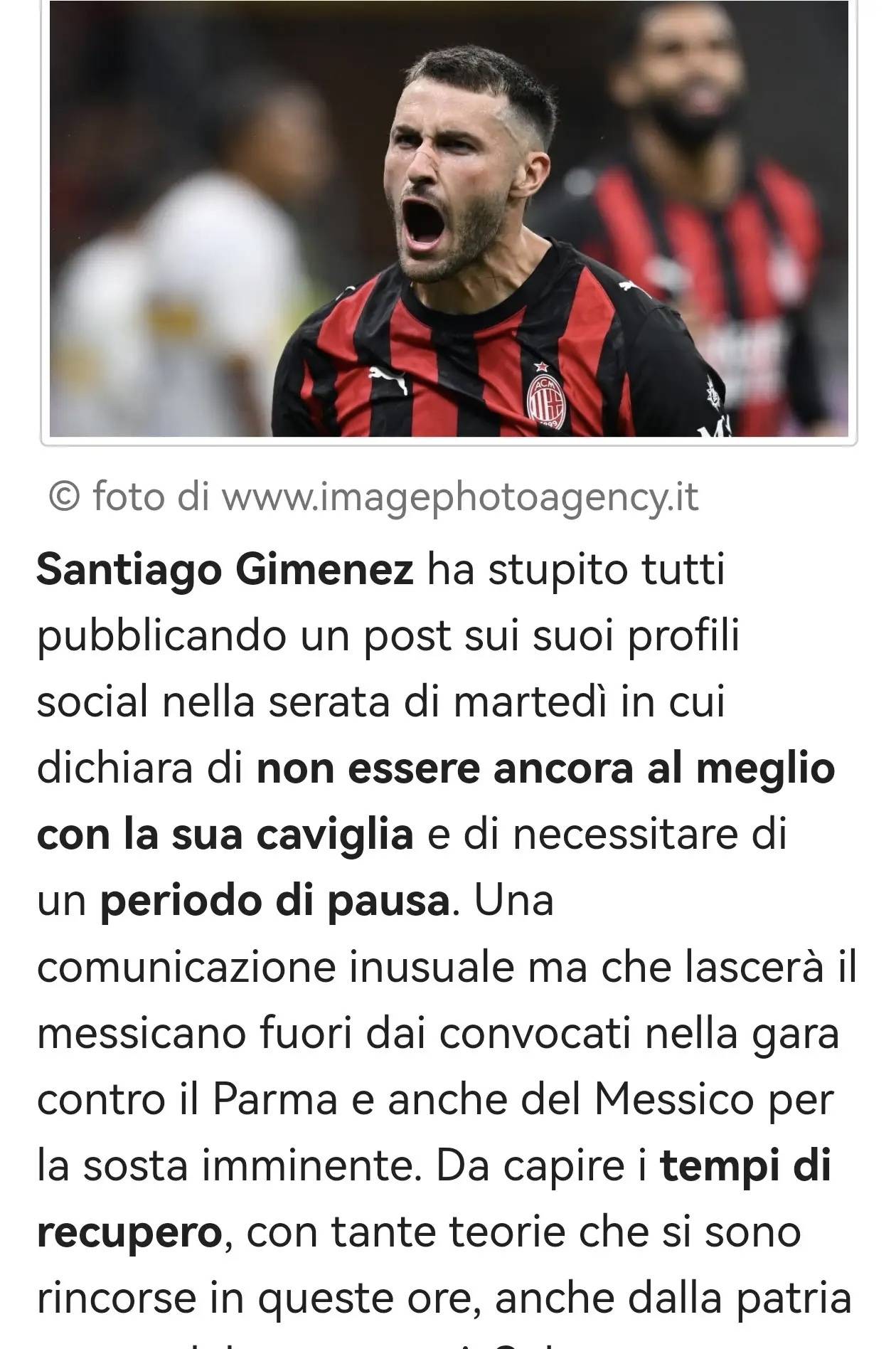 โมเร็ตโตกล่าวว่า: "ซานติอาโก ฆิเมเนซ ประกาศการพักรักษาตัวจากอาการบาดเจ็บในลักษณะที่ไม่ปกติ – ผ่านแพลตฟอร์มโซเชียลมีเดียส่วนตัวของเขา ซึ่งเขาได้ระบุว่าต้องการเวลาในการฟื้นตัวจากอาการบาดเจ็บที่ข้อเท้าซึ่งรบกวนเขามาเป็นระยะเวลาหนึ่งแล้ว"