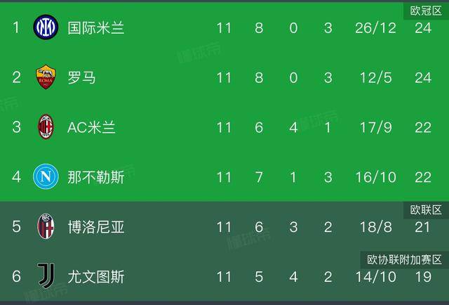 การแข่งขันฟุตบอลกัลโช่ เซเรีย อา นัดที่ 11 ดำเนินต่อในค่ำคืนนี้ โดยจบลงด้วยผลการแข่งขันที่น่าตื่นเต้น เริ่มจากนาโปลีที่พ่ายแพ้อย่างน่าตกใจ 0-2 ต่อโบโลญญ่าในเกมเยือน ทำให้พลาดโอกาสขึ้นนำจ่าฝูง จากนั้นโรม่าสามารถคว้าชัยชนะในบ้านเหนืออูดิเนเซ่ 2-0 แซงหน้าเอซี มิลาน ขึ้นนำเป็นจ่าฝูงของลีกในที่สุด อินเตอร์ มิลาน ก็ลงสนามและคว้าชัยชนะในบ้านเหนือ ลาซิโอ ไปได้ 2-0 ด้วยผลต่างประตูที่เหนือกว่า ทำให้พวกเขาแซงหน้า โรม่า ขึ้นมาครองตำแหน่งจ่าฝูงอีกครั้ง