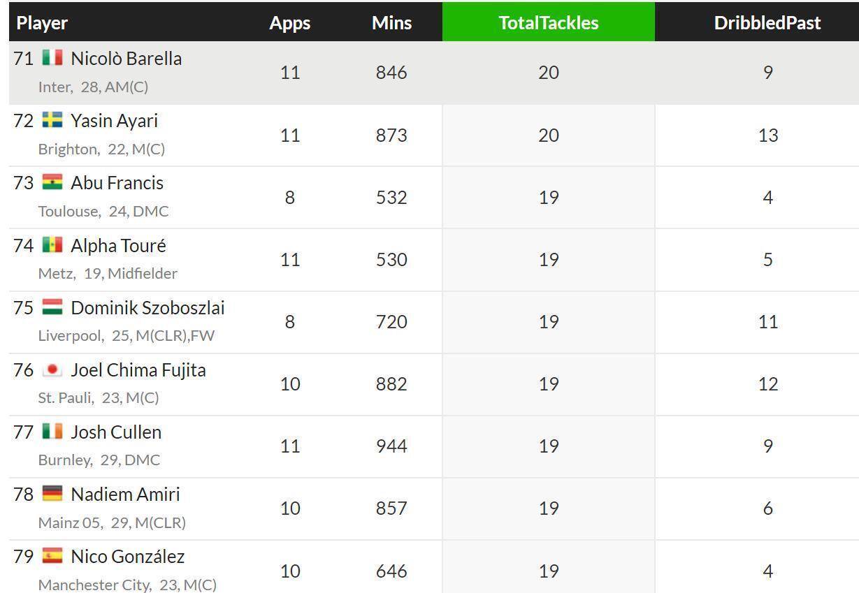ปัญหาอาจอยู่ที่แดนกลางเอง ในขณะที่แบร์ราดามีความมุ่งมั่นอย่างมากในการเข้าปะทะ แต่ข้อจำกัดทางร่างกายของเขาทำให้อัตราความสำเร็จในการเข้าสกัดอยู่ที่เพียง 55% ซึ่งจัดอยู่ในอันดับที่ 71 ของกองกลางทั้งหมดในลีกชั้นนำ 5 ลีกของยุโรป ทำให้เขาได้รับตำแหน่งที่น่าสงสัยว่าเป็น 'ผู้เชี่ยวชาญการเข้าสกัดในแดนกลาง' ของอินเตอร์ มิลานที่น่าประหลาดใจยิ่งกว่านั้นคือ ผู้เล่นที่ทำการแท็คเกิลสูงสุดเป็นอันดับสองของทีมคือ เซ็นเตอร์แบ็ค อเลสซานโดร บาสโตนี่ ซึ่งทำการแท็คเกิลสำเร็จ 10 ครั้งในแดนกลางและแดนรุก – ตามหลังบาเรลล่าเพียง 13 ครั้งเท่านั้น เมื่อพิจารณาสถิติของกองกลางคนอื่นๆ พบว่า: ชัลฮาโนกลู 13 ครั้ง, มคิทาร์ยาน 9 ครั้ง, วลาโฮวิช 5 ครั้ง ขณะที่นักเตะใหม่ เซียลินสกี้ ทำได้เพียง 2 ครั้งเท่านั้นจุดสว่างเพียงหนึ่งเดียว ซูคิช มีอัตราการตัดบอลเฉลี่ยสูงกว่าเบราร์ดี อย่างไรก็ตาม อัตราความสำเร็จ 46.3% และการได้รับใบเหลือง 3 ครั้งของเขาเผยให้เห็นถึงความยากลำบากในการปรับตัวเข้ากับความเข้มข้นทางร่างกายของเซเรีย อา