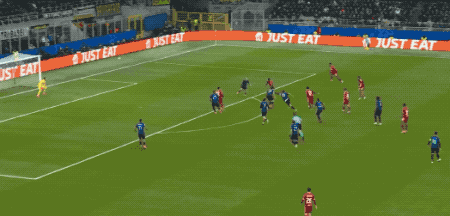 ก่อนหมดครึ่งแรกไม่นาน ลูกโหม่งของเลาตาโร่สร้างความอันตรายอย่างหนัก แต่อลิสซอนก็โชว์การเซฟสำคัญไว้ได้ ครึ่งแรกจบลงด้วยสกอร์ 0-0