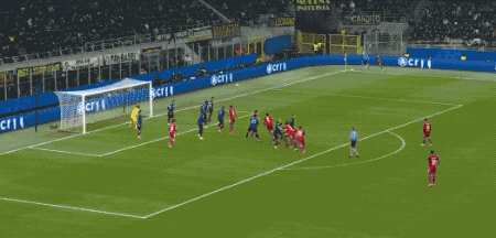 จนกระทั่งนาทีที่ 38 อินเตอร์จึงมีโอกาสยิงตรงกรอบเป็นครั้งแรก โดยลูกฟรีคิกของแบร์ราร์ดี้โค้งผ่านกำแพง แต่บอลเฉียดเสาออกไปอย่างหวุดหวิด