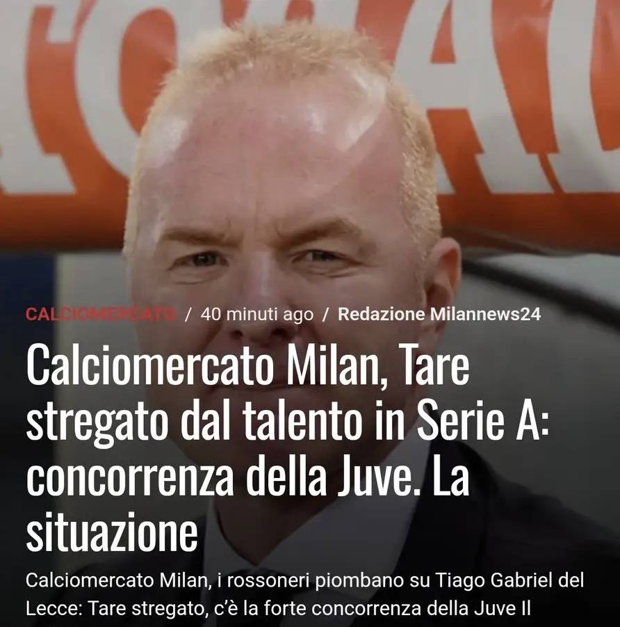 ตามรายงานจากสำนักงานใหญ่ของ Milan Dynamics, Rossoneri กำลังติดตามผู้เล่นรายนี้อย่างจริงจัง โดยเฉพาะอย่างยิ่ง ข้อมูลที่ชัดเจนระบุว่า: "เมื่อวันที่ 8 พฤศจิกายน ที่ Lecce, มีผู้สอดแนมที่ได้รับอนุญาตจาก Milan อยู่ในอัฒจันทร์เพื่อสังเกตการณ์ Thiago Gabriel" การปรากฏตัวของตัวแทนจาก Rossoneri ในวันนั้นยืนยันว่าความสนใจของสโมสรในดาวรุ่งรายนี้ไม่ใช่เรื่องผิวเผินแต่อย่างใด