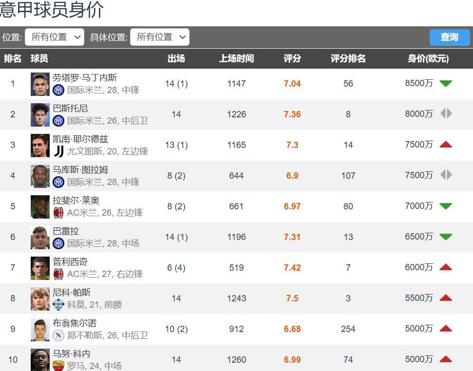 ไม่มีการเปรียบเทียบ ไม่มีความเสียหาย ลาลีกาและพรีเมียร์ลีกต่างก็มีผู้เล่นมูลค่า 100 ล้านยูโรเจ็ดคน ในขณะที่บุนเดสลีกามีสองคน ตอนนี้ลีกเอิงได้แซงบุนเดสลีกาด้วยผู้เล่นที่มีมูลค่าดังกล่าวสามคน ลีกชั้นนำเพียงลีกเดียวที่ไม่มีผู้เล่นมูลค่า 100 ล้านยูโรคือเซเรียอา ซึ่งบ่งบอกถึงการเสื่อมถอยของลีกนี้ได้เป็นอย่างดี ผู้เล่นที่มีมูลค่าสูงสุดในเซเรียอาในขณะนี้คือ ลาอูตาโร่ มาร์ติเนซ กองหน้าของอินเตอร์ มิลาน ซึ่งมีมูลค่า 85 ล้านยูโร