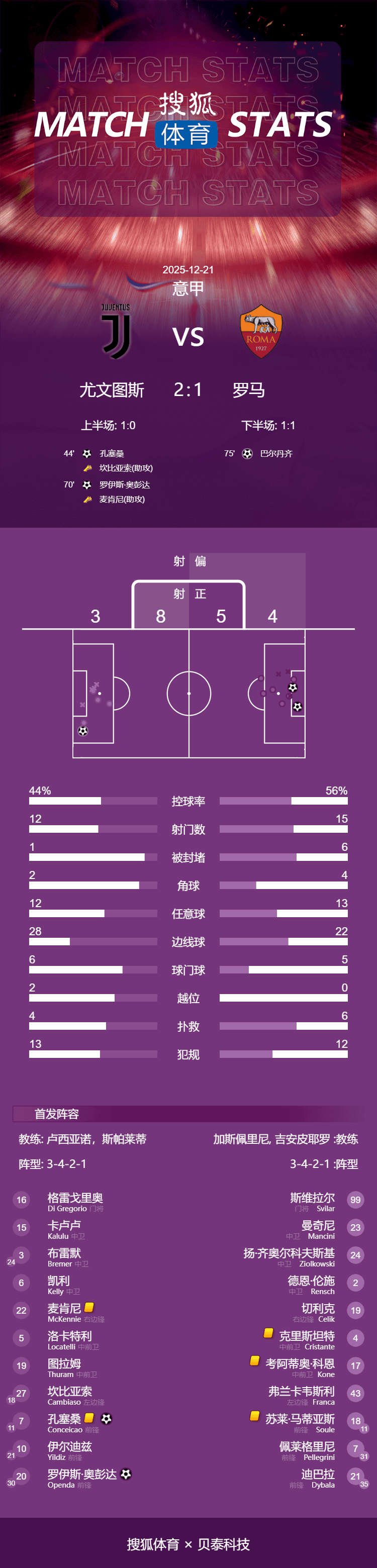 การแข่งขันจบลงด้วยชัยชนะของยูเวนตุสเหนือโรม่า 2-1