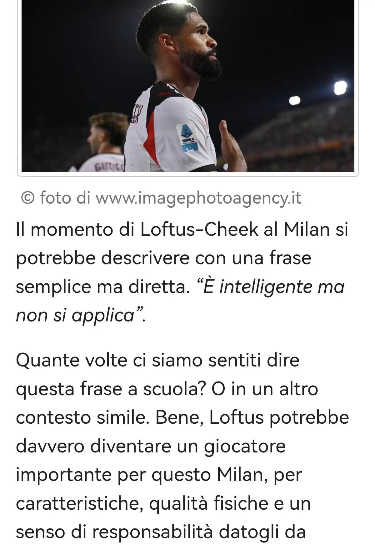 เราเคยได้ยินวลีนี้ในโรงเรียนหรือสถานที่คล้ายกันกี่ครั้งแล้ว? จริงๆ แล้ว ด้วยลักษณะเฉพาะตัว ลักษณะทางกายภาพ และความรับผิดชอบที่โค้ชอัลเลกรีปลูกฝังให้ โลฟตัส-ชีค อาจกลายเป็นผู้เล่นคนสำคัญของทีมมิลานนี้ได้