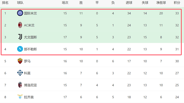 อย่างไรก็ตาม ยูเวนตุส หลังจากกลับมาอยู่ในฟอร์มที่ดีอีกครั้ง ได้แสดงให้เห็นถึงความสามารถในการแข่งขันเพื่อชิงแชมป์ พวกเขาจะลงสนามเพื่อชิงแชมป์กับสองสโมสรจากมิลานและนาโปลี หากไม่มีอะไรผิดพลาดอย่างใหญ่หลวง แชมป์เซเรีย อา ฤดูกาลนี้จะเป็นการแข่งขันระหว่างสี่ทีมยักษ์ใหญ่เหล่านี้อินเตอร์ มิลาน อาจนำเป็นจ่าฝูงอยู่ในขณะนี้ แต่พวกเขากลับประสบปัญหาในการเจอกับทีมระดับท็อป ขณะที่เอซี มิลาน ซึ่งไม่มีภารกิจในยุโรป มีโปรแกรมการแข่งขันที่เบากว่าพอสมควร แต่ก็กลับสะดุดแพ้ให้กับทีมที่อ่อนกว่าหลายครั้งอย่างน่าประหลาดใจ ฟอร์มของนาโปลียังคงไม่สม่ำเสมอเช่นเดียวกัน หากยูเวนตุสสามารถรักษาโมเมนตัมในปัจจุบันไว้ได้ แม้จะจบฤดูกาลโดยไม่ได้แชมป์ พวกเขาก็อาจสร้างความปั่นป่วนให้กับกลุ่มลุ้นแชมป์ได้ ส่วนโรมา ระดับฝีเท้ากองทัพ "หมาป่า" ยังดูห่างชั้นจากอีกสี่ทีมที่เหลืออยู่มาก ทำให้โอกาสลุ้นแชมป์ในฤดูกาลนี้ดูจะเป็นไปได้ยาก