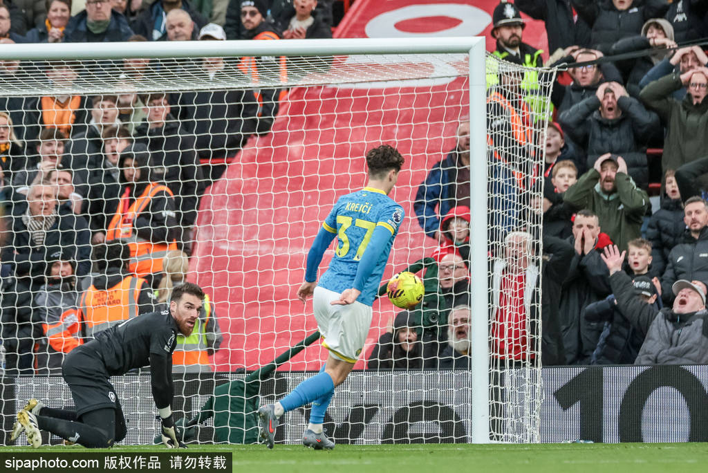ในนาทีที่ 28 ฟลินปอนเปิดบอลจากด้านขวาของกรอบเขตโทษถูกกองหลังสกัดไว้ได้ ขณะที่ลูกยิงของแม็คคอลลิสเตอร์จากด้านขวาของจุดโทษพุ่งไปชนเสาขวา ในนาทีที่ 29 เคลเลเฮอร์จ่ายบอลให้เอกิติ ซึ่งพยายามยิงจากขอบเขตโทษแต่ถูกกองหลังสกัดไว้ได้ในนาทีที่ 32 อารอกอเดเร่จ่ายบอลให้มาเน่ได้ครองบอลในแดนกลางและพาบอลขึ้นหน้า การยิงของเขาจากขอบเขตโทษด้านขวาพุ่งข้ามคานออกไป ในนาทีที่ 37 เชียซ่าครอสบอลจากด้านซ้ายของกรอบเขตโทษถูกกองหลังสกัดไว้ได้ และการยิงของเคลเลเฮอร์จากด้านซ้ายของกรอบเขตโทษก็หลุดเสาแรกออกไป
