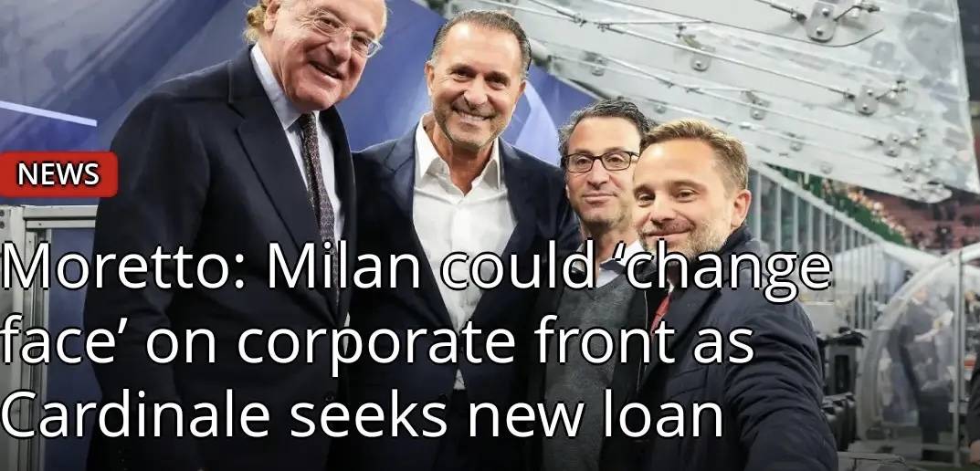 ในวิดีโอ YouTube เมื่อวานนี้ นักข่าวชื่อดัง Matteo Moretto ได้พูดถึงสถานการณ์ทางธุรกิจของสโมสร โดยแนะนำว่าอาจมีการเปลี่ยนแปลงในเรื่องนี้เกิดขึ้นจริง ๆ หาก Cardinal สามารถหาผู้ให้กู้รายใหม่ได้ ผู้ให้กู้รายใหม่นี้จะต้องมีตัวแทนในคณะกรรมการบริหารด้วย