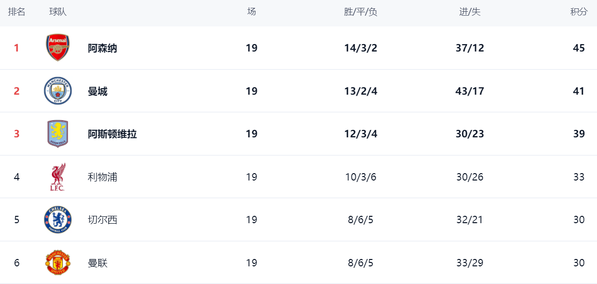 ชะตากรรมของสามทีมชั้นนำแตกต่างกันในรอบนี้ ซึ่งเปลี่ยนแปลงการแข่งขันชิงแชมป์อย่างมาก ชัยชนะของอาร์เซนอลทำให้พวกเขามีความได้เปรียบมากขึ้นในตำแหน่งผู้นำอาร์เซนอลนำเป็นจ่าฝูงด้วย 45 คะแนน อย่างไรก็ตาม แมนเชสเตอร์ ซิตี้ ทำแต้มหล่นไปอย่างสำคัญจากการเสมอ ทำให้ช่องว่างกับอาร์เซนอลเพิ่มขึ้นเป็นสี่คะแนน ขณะที่พวกเขาอยู่ในอันดับสองด้วย 41 คะแนน ส่วนแอสตัน วิลล่า ทีมอันดับสาม หลังจากแพ้ให้กับอาร์เซนอล ทำให้ความหวังในการคว้าแชมป์ของพวกเขาลดลงอย่างรวดเร็ว โดยตามหลังเดอะกันเนอร์สอยู่หกคะแนน