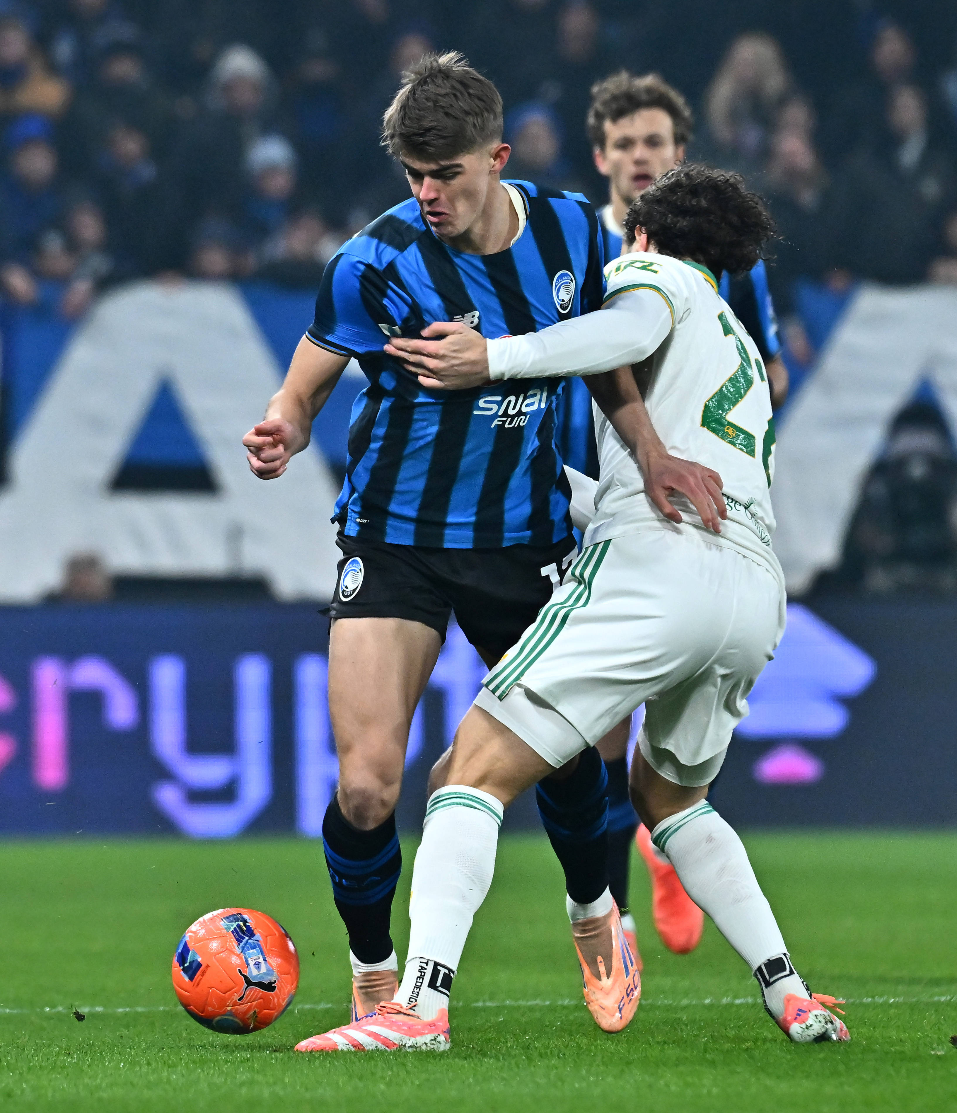 เมื่อวันที่ 3 มกราคม นักเตะอตาลันต้า สกาลวินี (คนที่สองจากซ้าย) ทำประตูระหว่างการแข่งขัน สำนักข่าวซินหัว (ภาพโดย อัลแบร์โต ลิงเรีย)