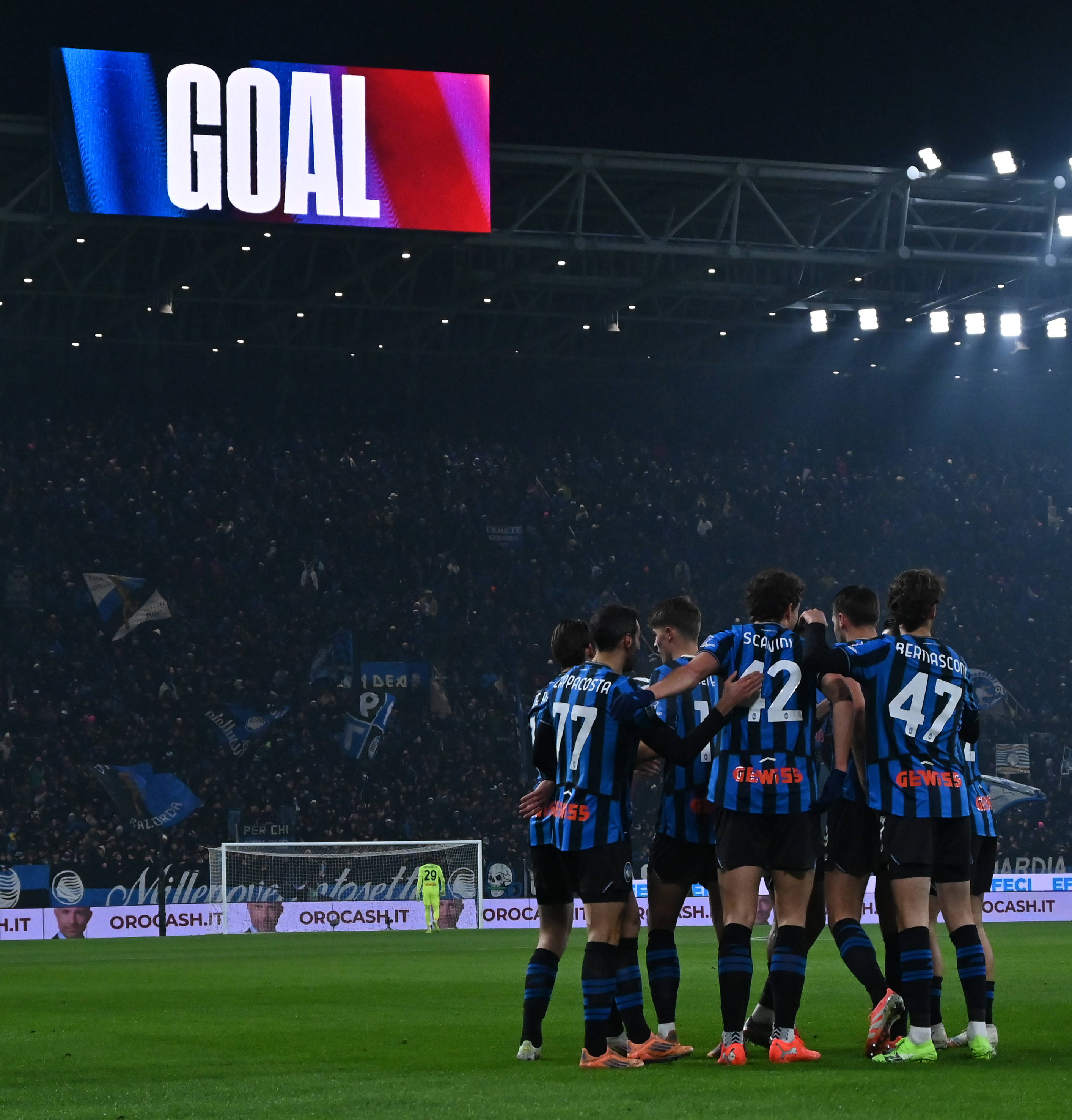 เมื่อวันที่ 3 มกราคม นักเตะอตาลันต้า สกาลวินี (คนที่สามจากขวา) ฉลองการทำประตู สำนักข่าวซินหัว (ภาพโดย อัลแบร์โต ลิงเกีย)