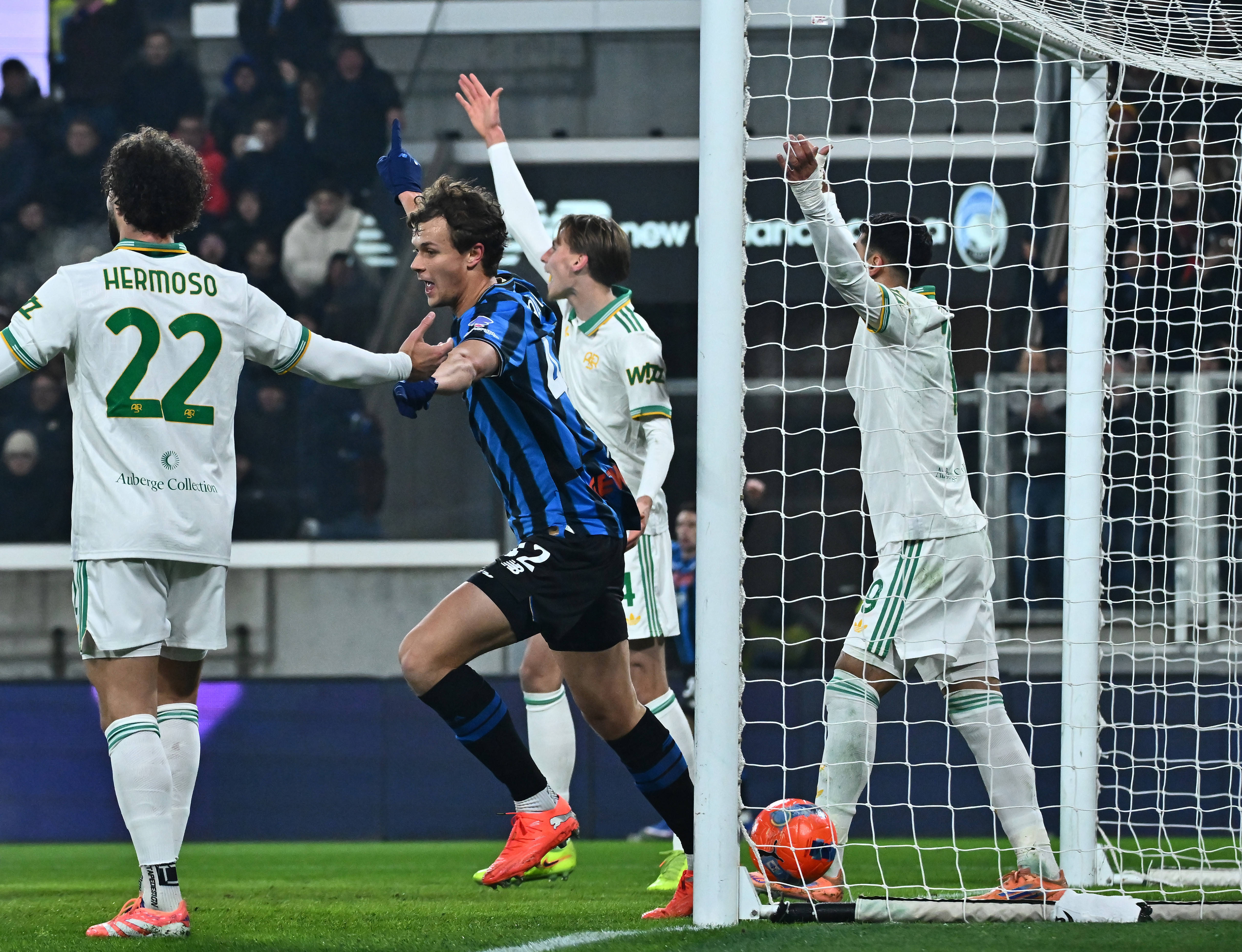 เมื่อวันที่ 3 มกราคม นักเตะอตาลันต้า สกาลวินี (คนที่สองจากซ้าย) ฉลองการทำประตู สำนักข่าวซินหัว (ภาพโดย อัลแบร์โต ลิงเกีย)