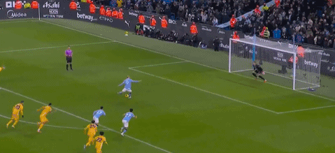 ในนาทีที่ 40 ฮาแลนด์ยิงเข้าประตูอย่างใจเย็นเพื่อยุติการไร้ประตูในสามนัดที่ผ่านมา ทำลายสกอร์ให้แมนเชสเตอร์ ซิตี้ขึ้นนำ 1-0!